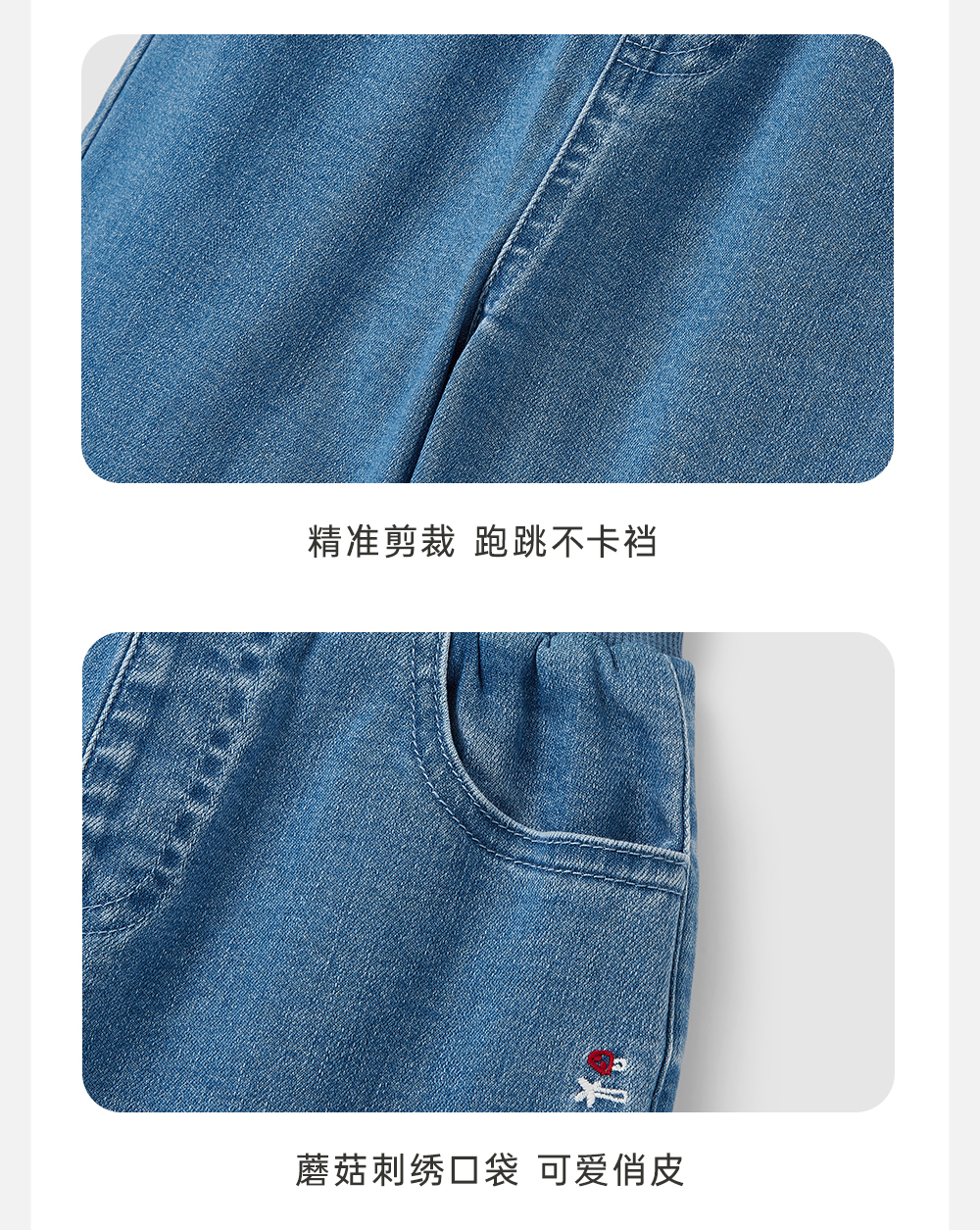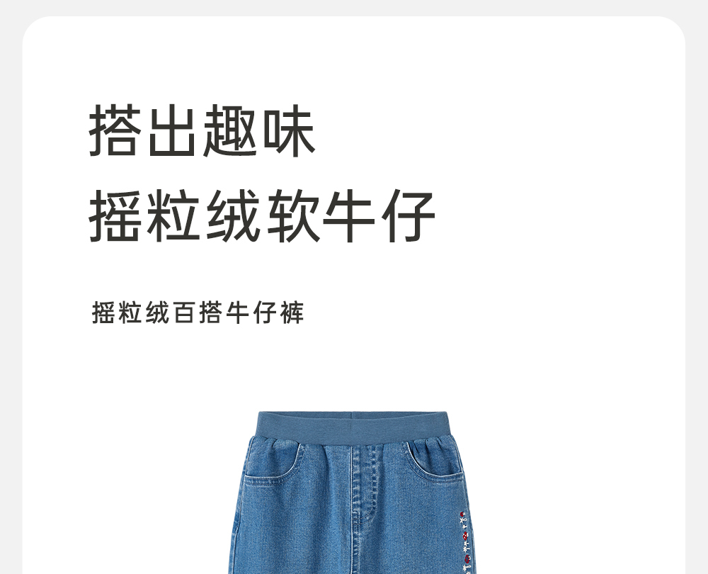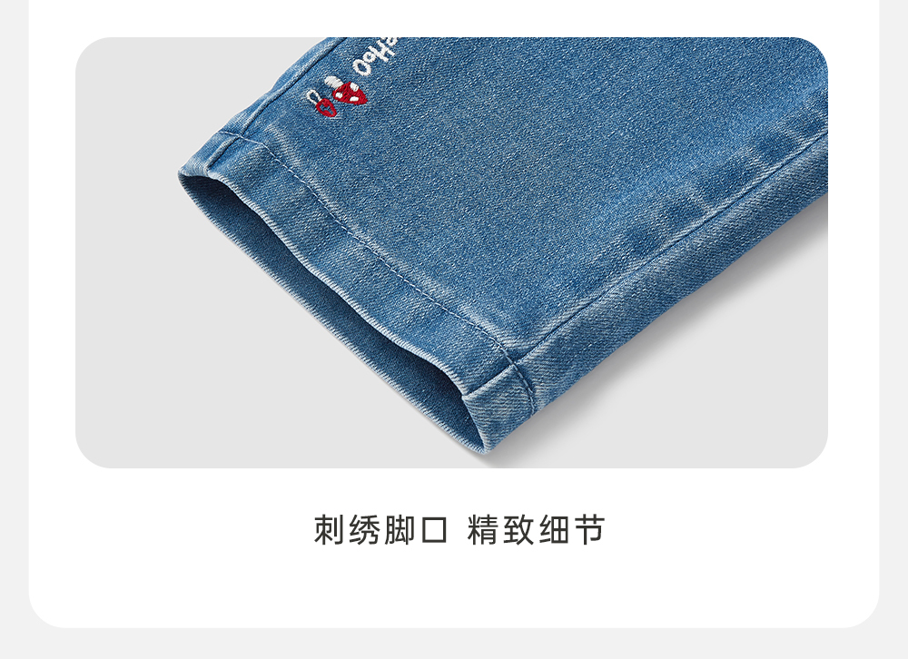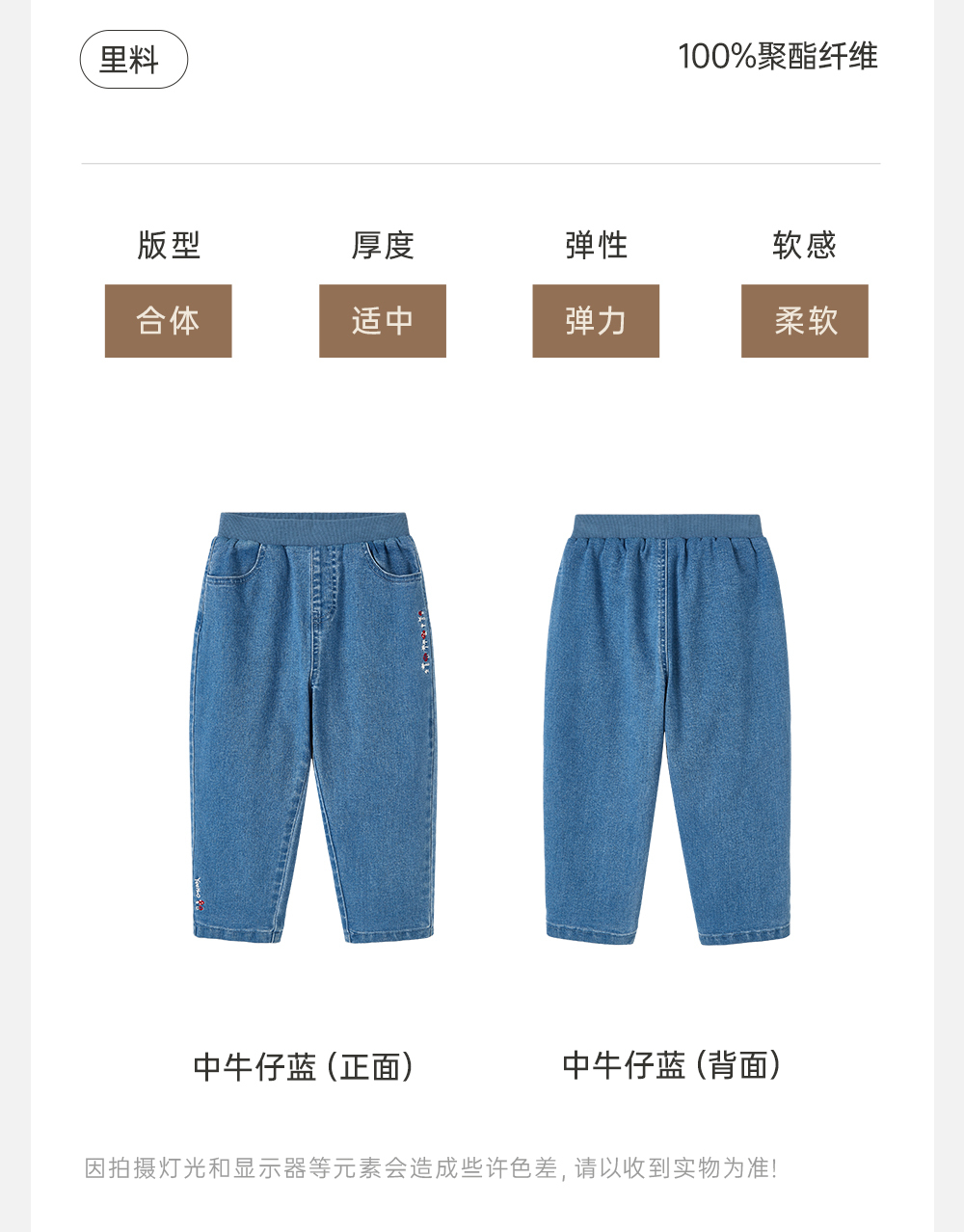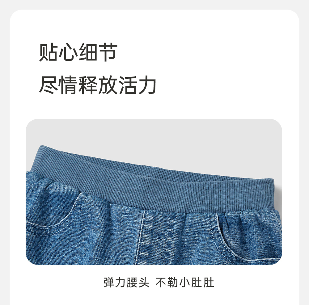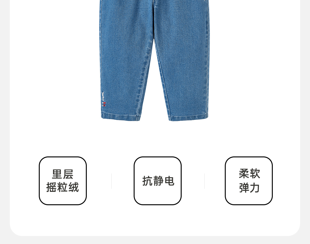 【商场同款】英氏儿童牛仔裤秋冬季摇粒绒女童裤子防静电新款