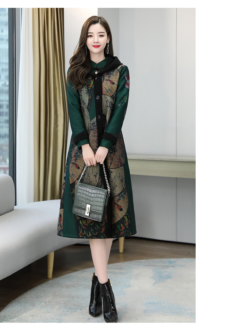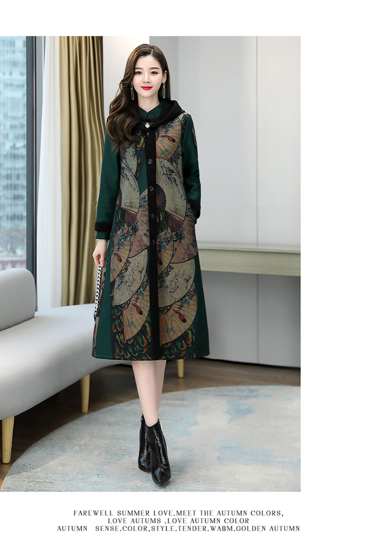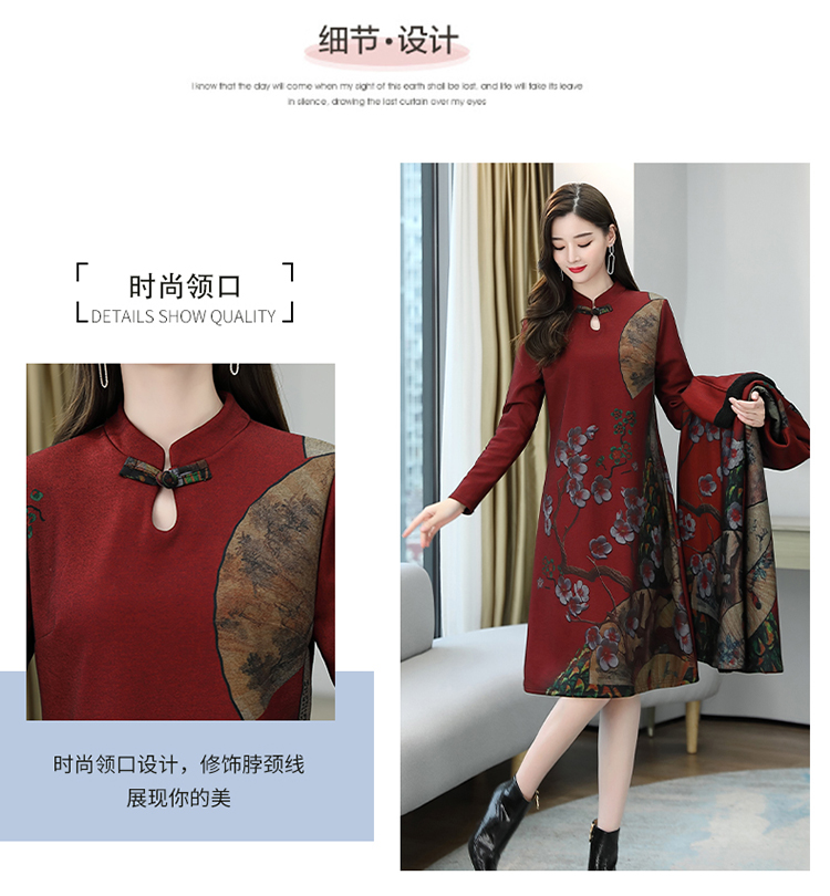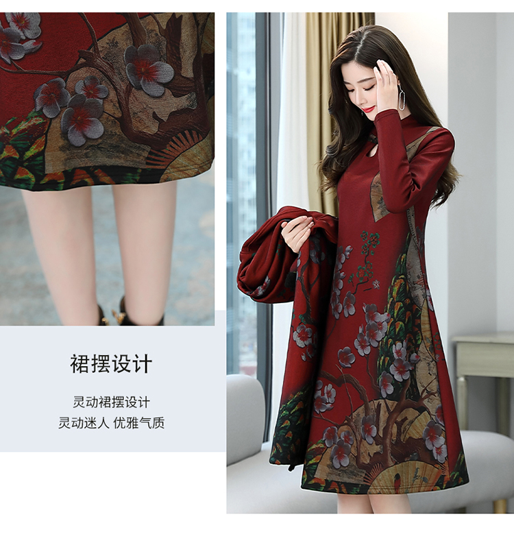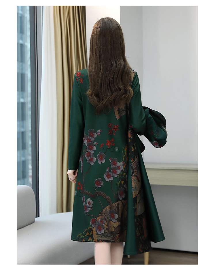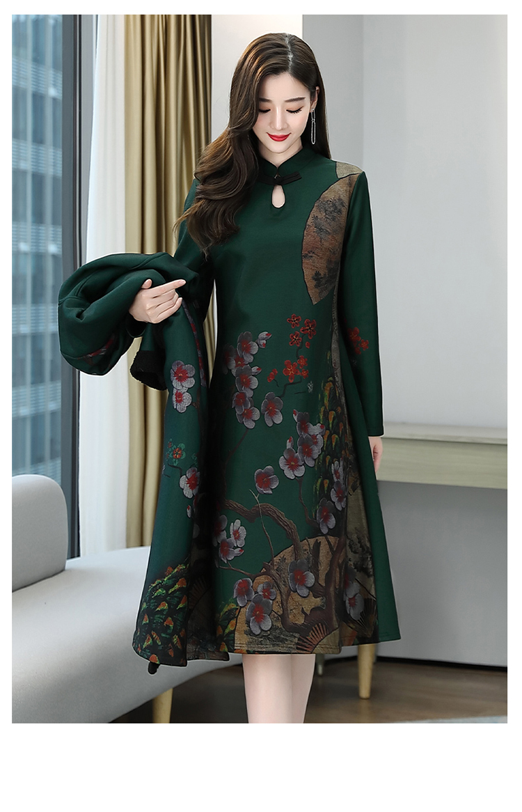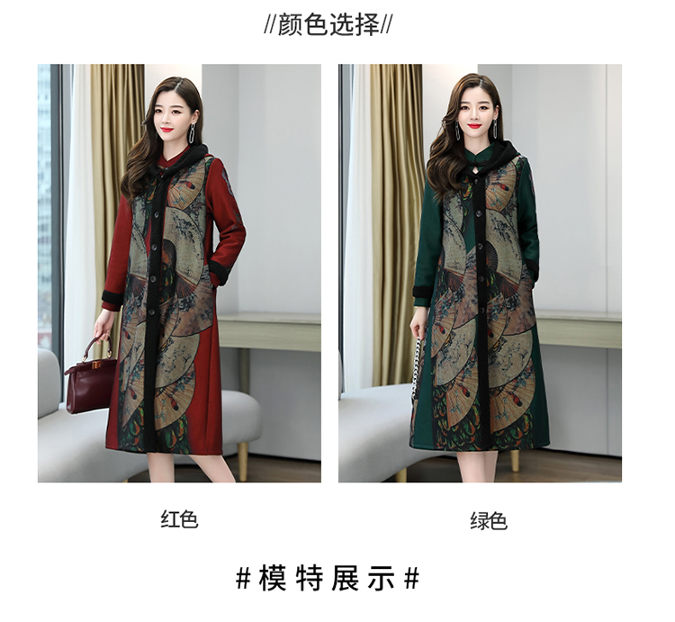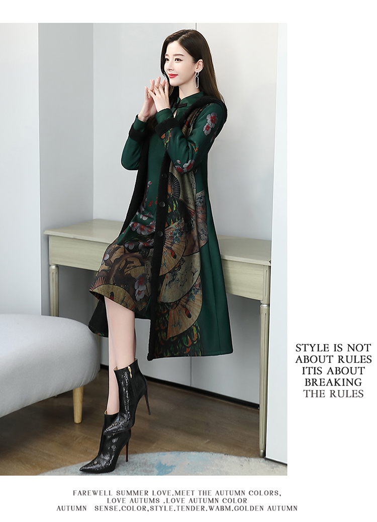 WZNH-HRYZ7172冬季时尚气质优雅印花长款连衣裙配马甲外套
