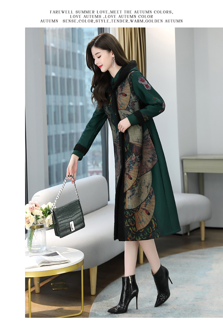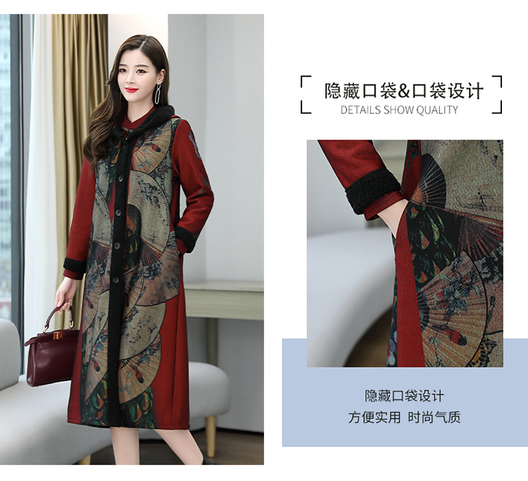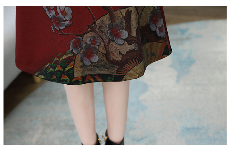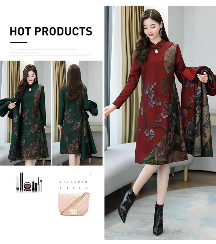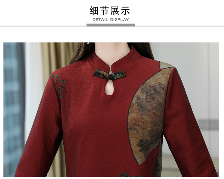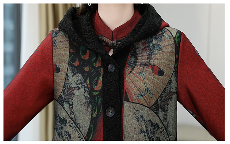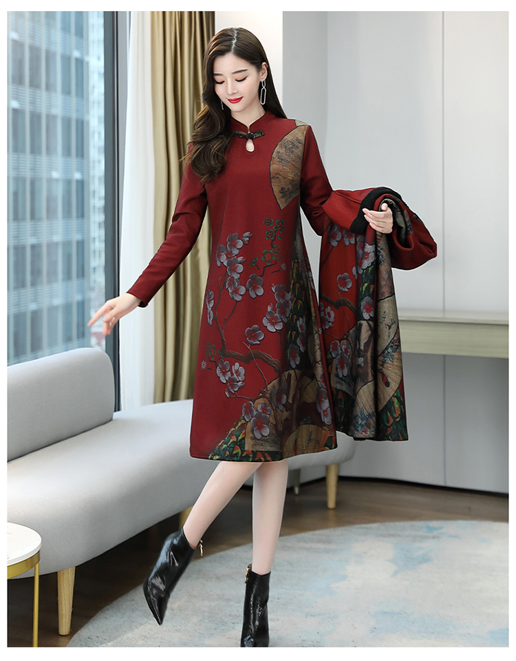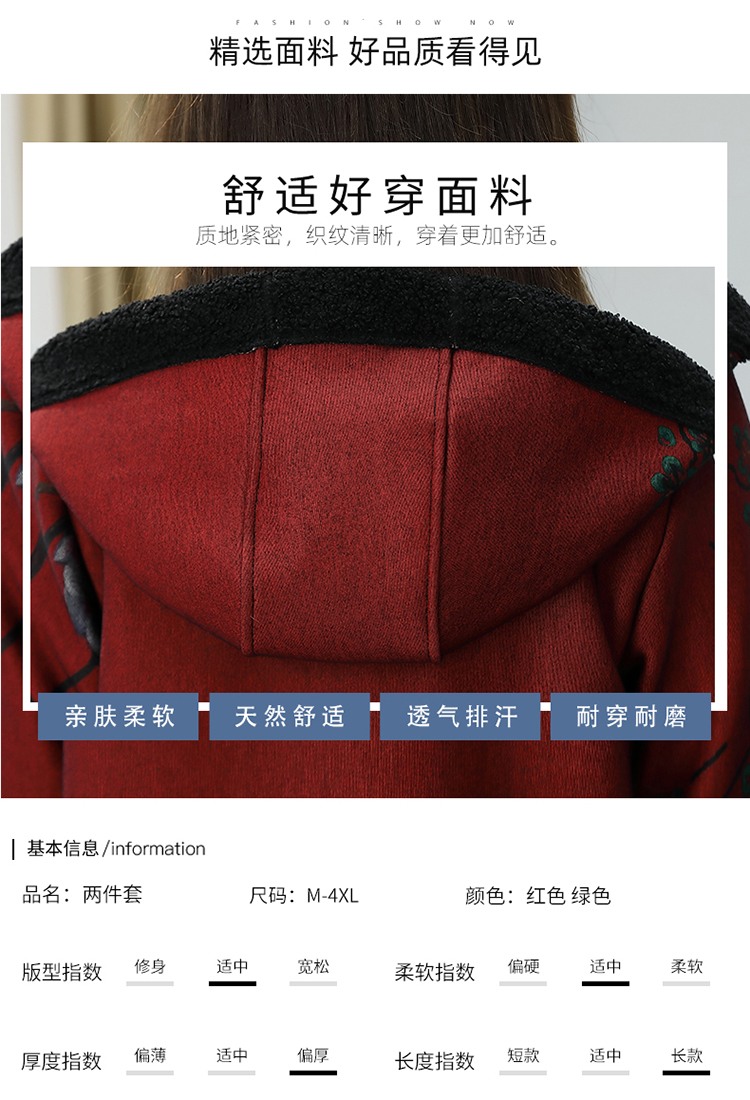 WZNH-HRYZ7172冬季时尚气质优雅印花长款连衣裙配马甲外套