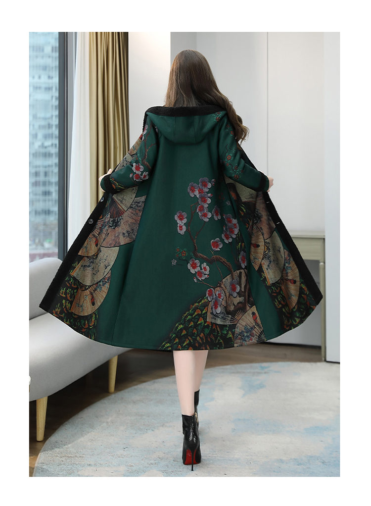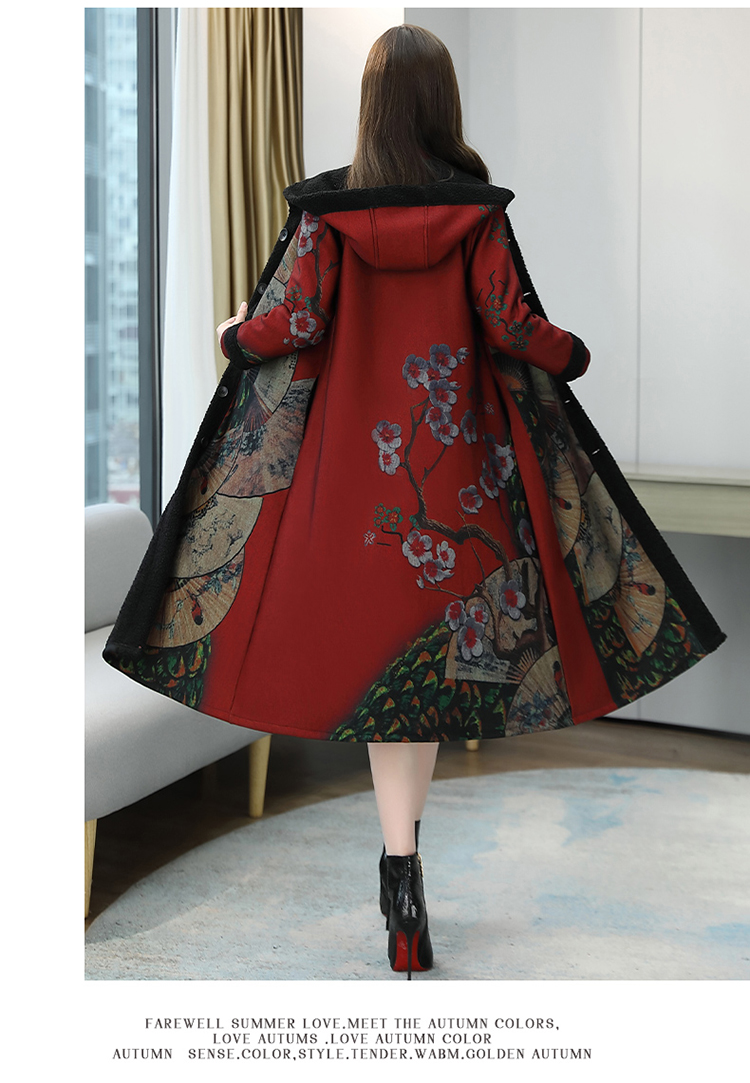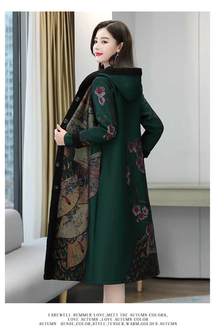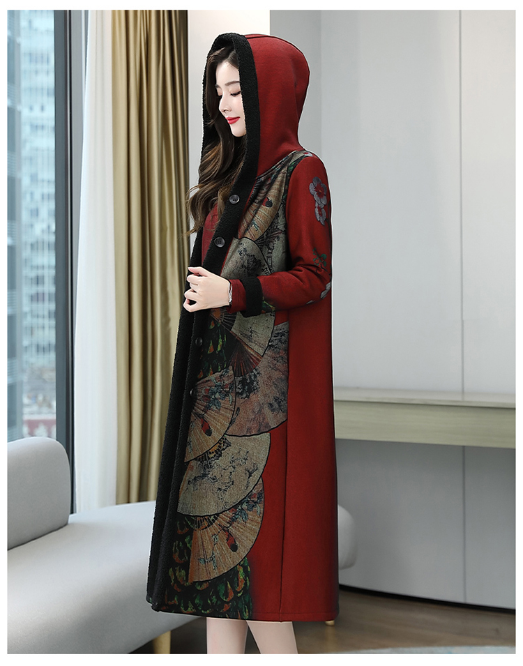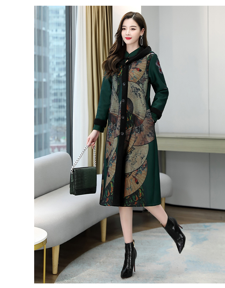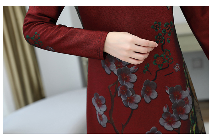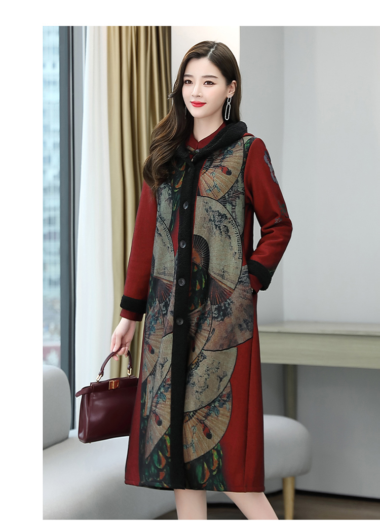 WZNH-HRYZ7172冬季时尚气质优雅印花长款连衣裙配马甲外套