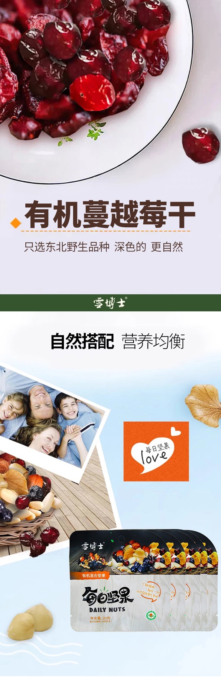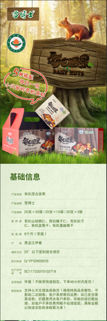 【有机每日坚果系列】【全系列最高满减80每单赠10元全场券】雪博士有机每日坚果/有机混合坚果600g/200g/60g【基地直邮】