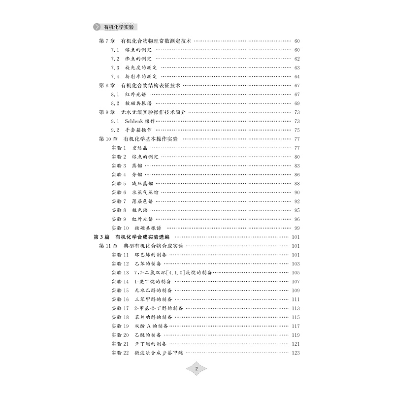 本书可作为高等院校化学、制药工程、化学工程与工艺、材料工程、应用化学、环境工程和高分子等专业本科生的有机化学实验课程教材,也可供从事相关专业工作的科技人员参考。