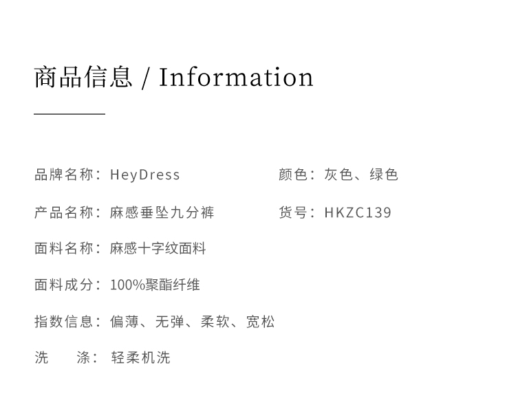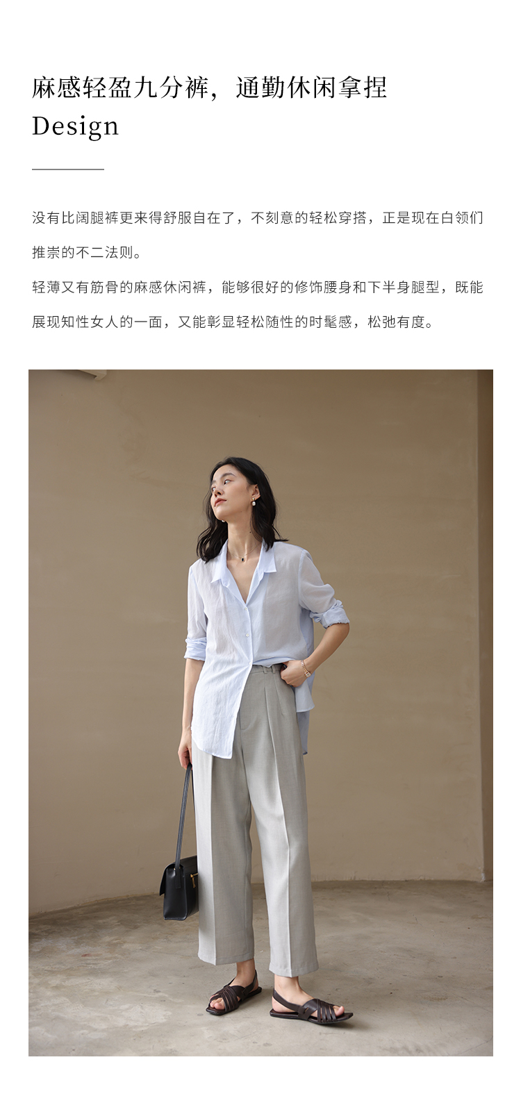 【周四精选福利】HeyDress麻感休闲裤女夏季薄款高腰显瘦九分裤宽松垂感直筒裤子