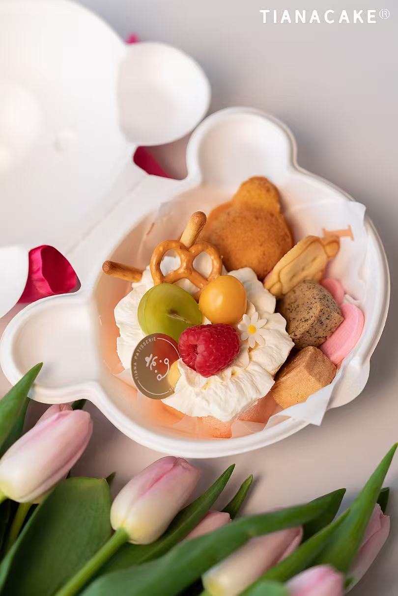 草莓蛋糕卷( 原味铁塔奶油 | 手煮草莓酱 | 新鲜草莓碎 | 原味芝士胚 | 手指饼干 | 新鲜树莓 | 新鲜青提 | 新鲜菇凉果)、丁丁曲奇、 黄油饼干