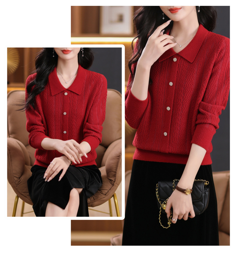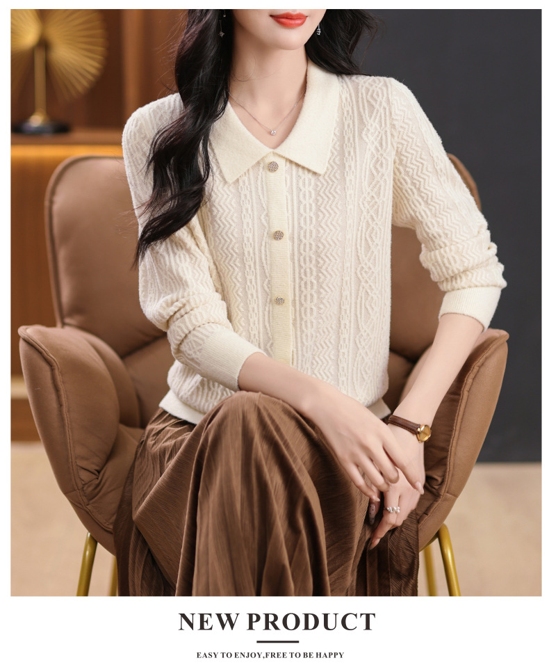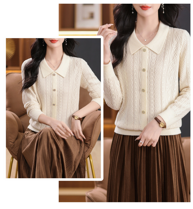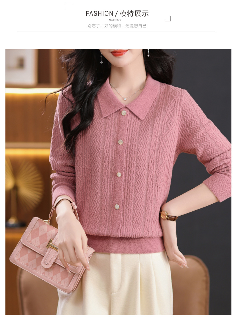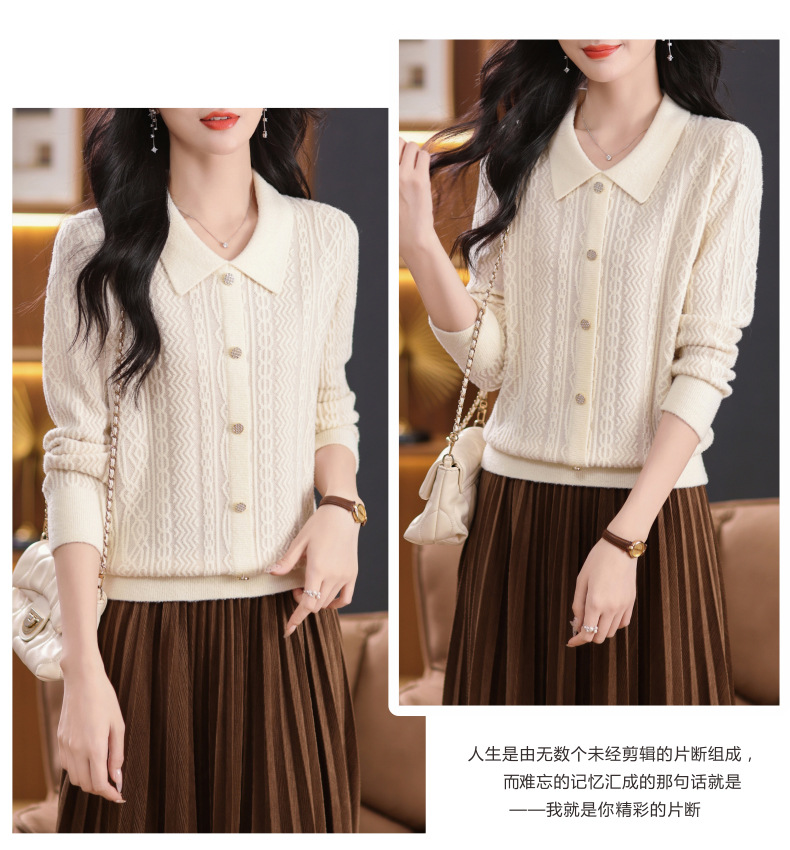 CC-5-9116娃娃领洋气麻花高腰短款针织衫女上衣宽松显瘦配裙子打底毛衣秋冬