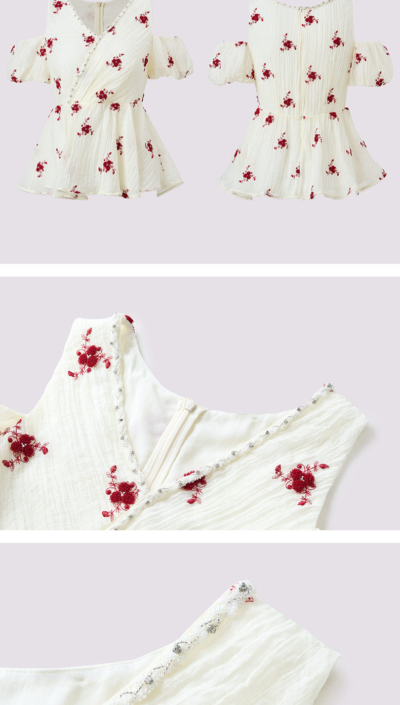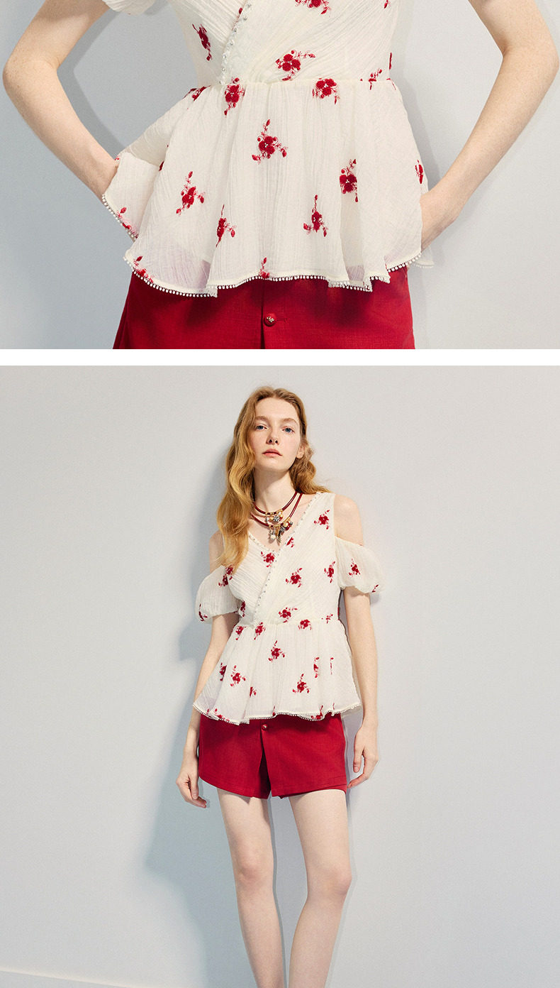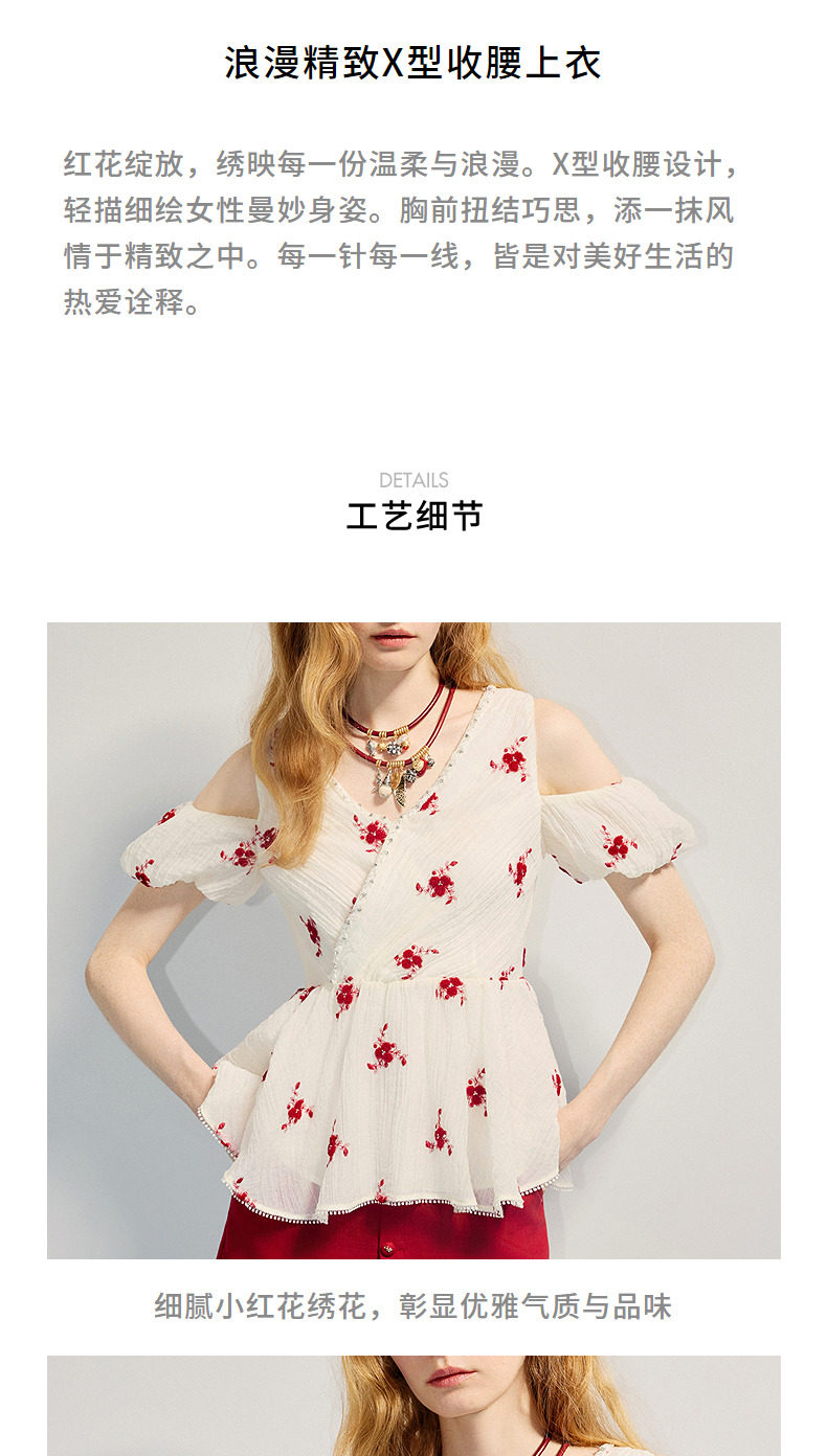 【商场同款】MAXRIENY精致浪漫感x型收腰露肩泡泡袖上衣25夏款(货号:MC86TP264)