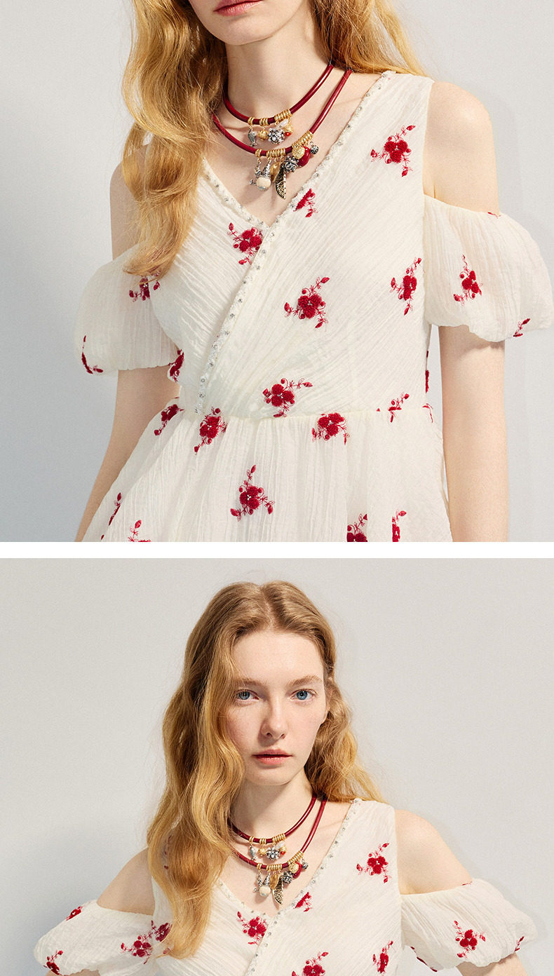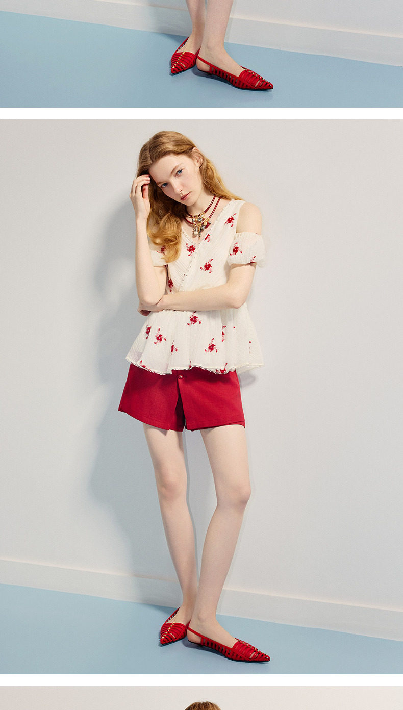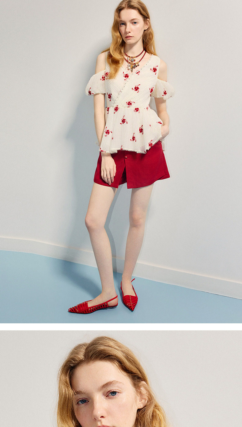【商场同款】MAXRIENY精致浪漫感x型收腰露肩泡泡袖上衣25夏款(货号:MC86TP264)