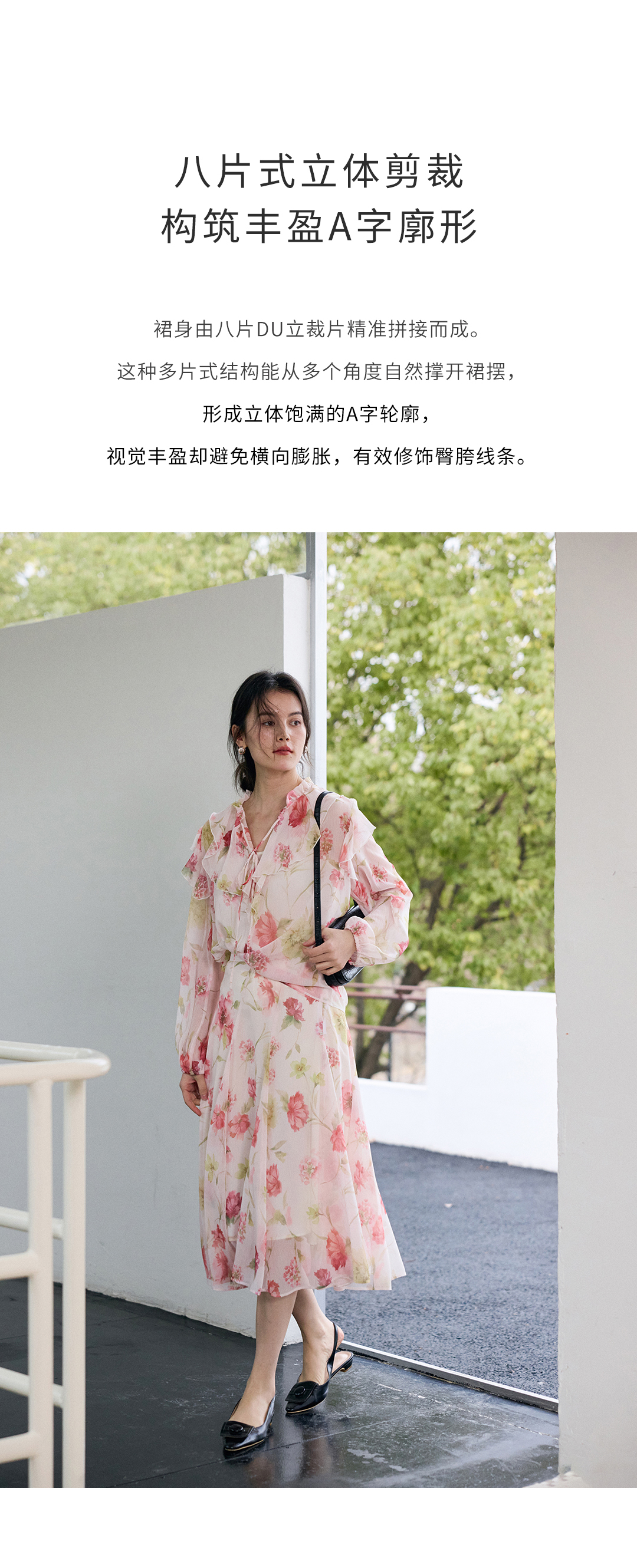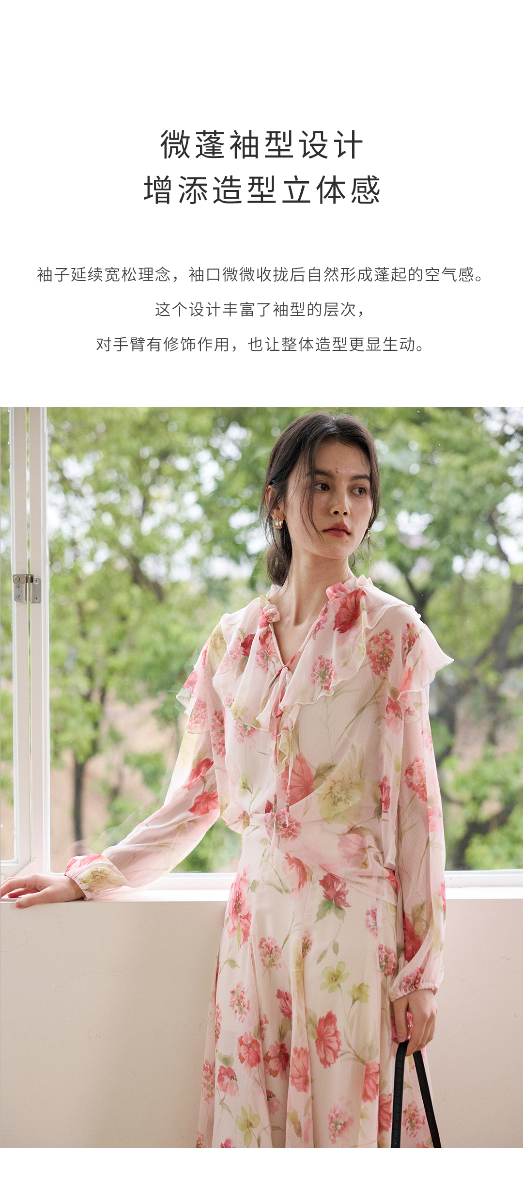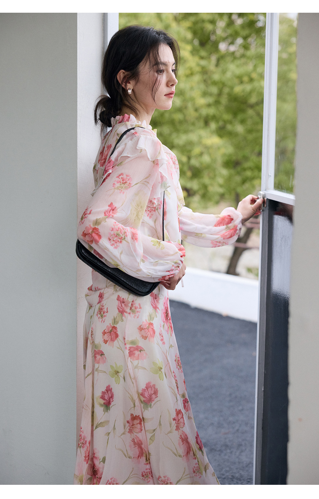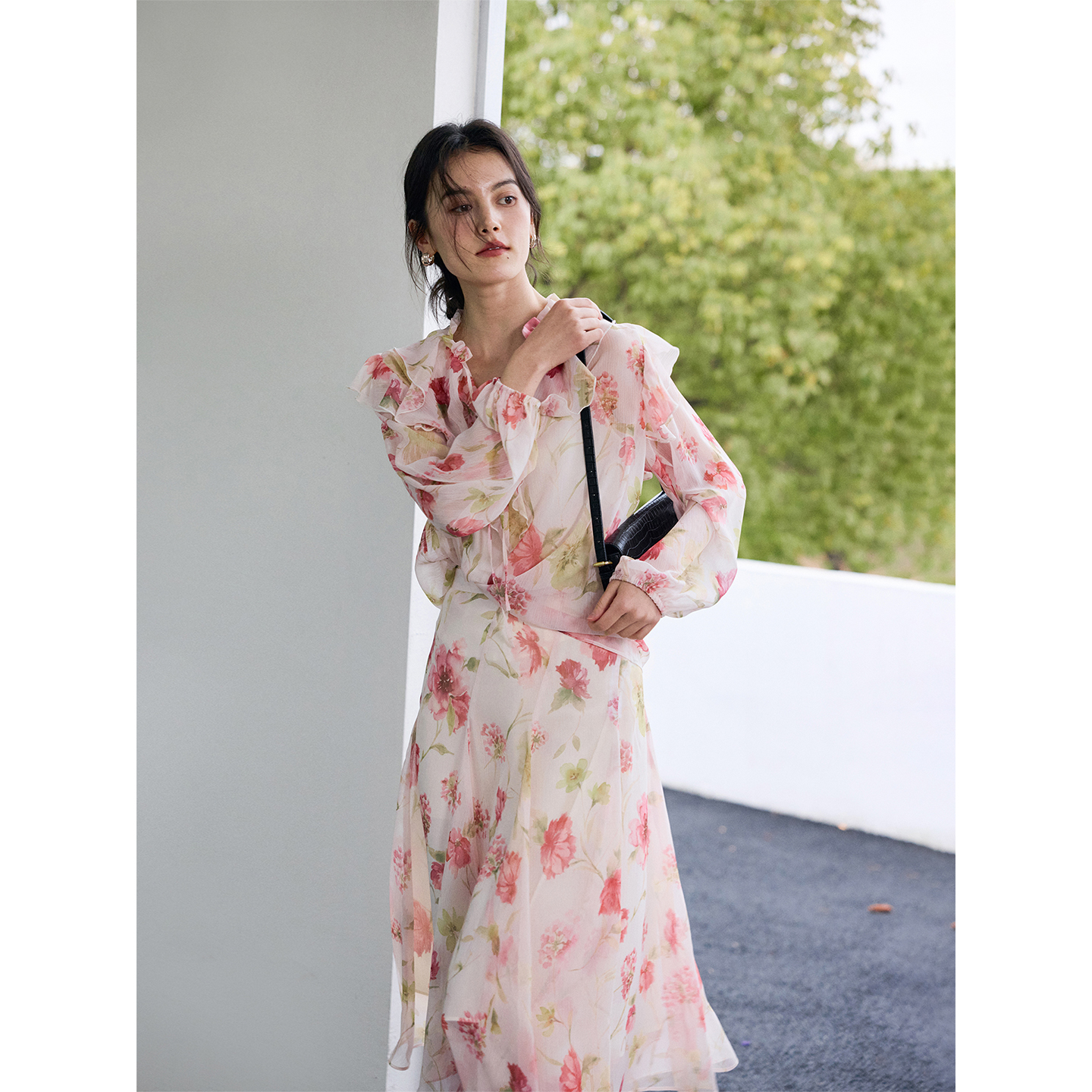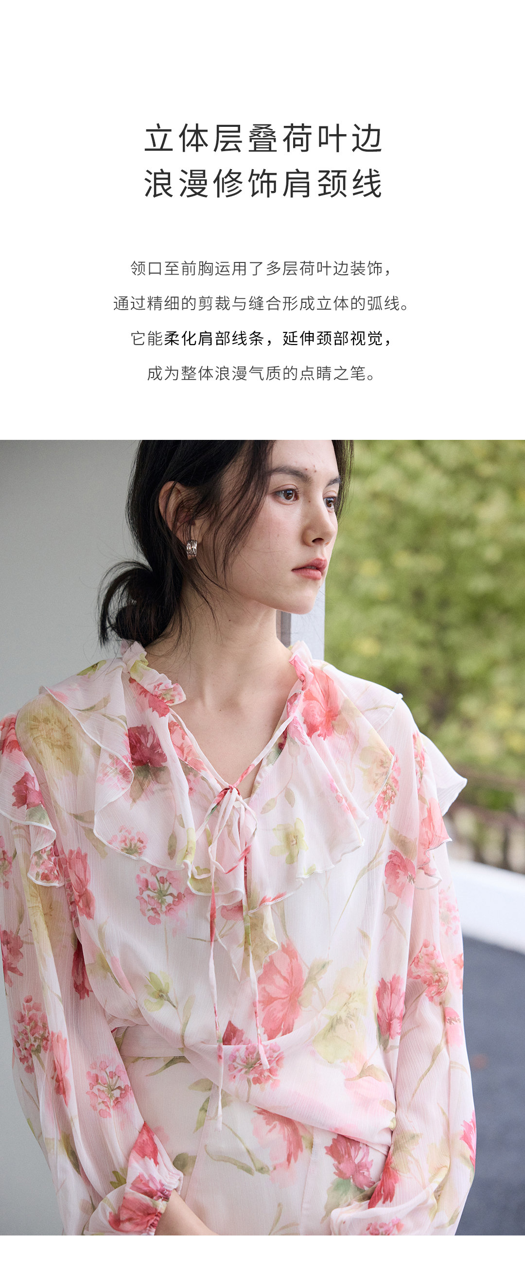 荷叶边印花宽松法式衬衫