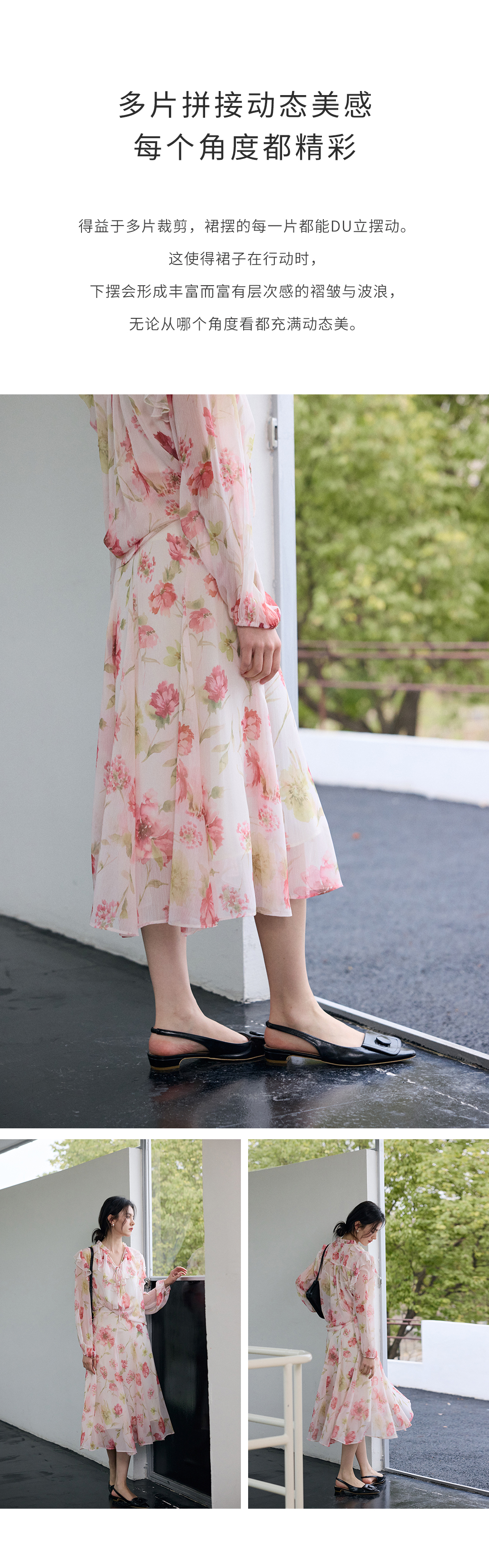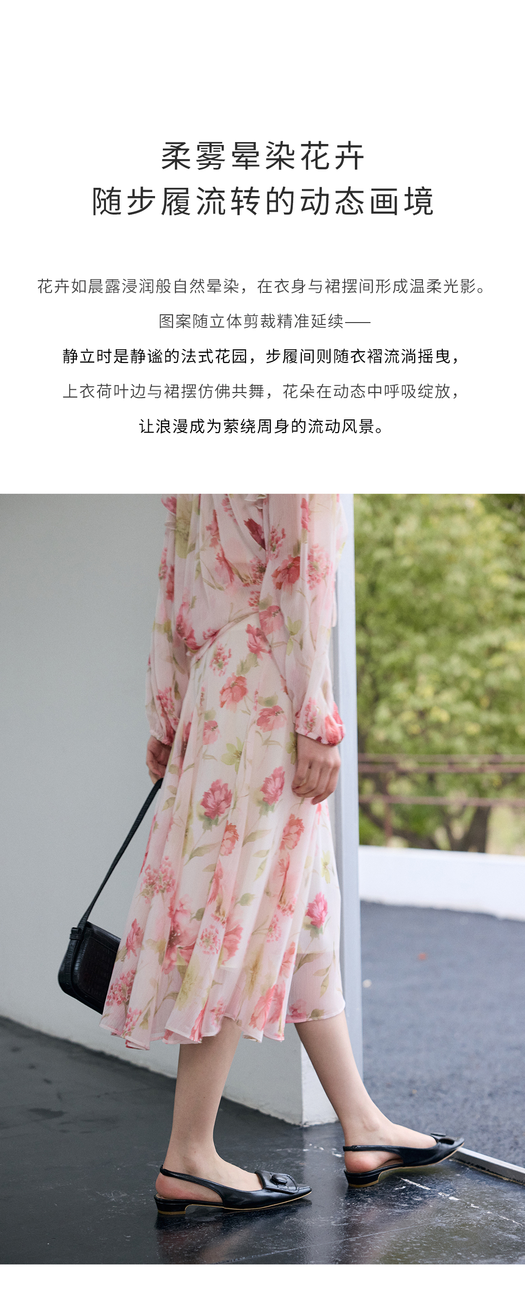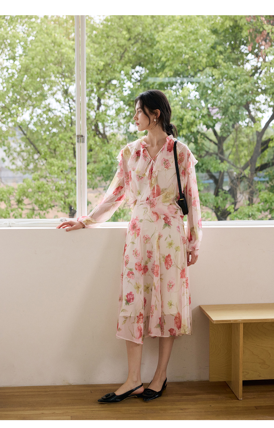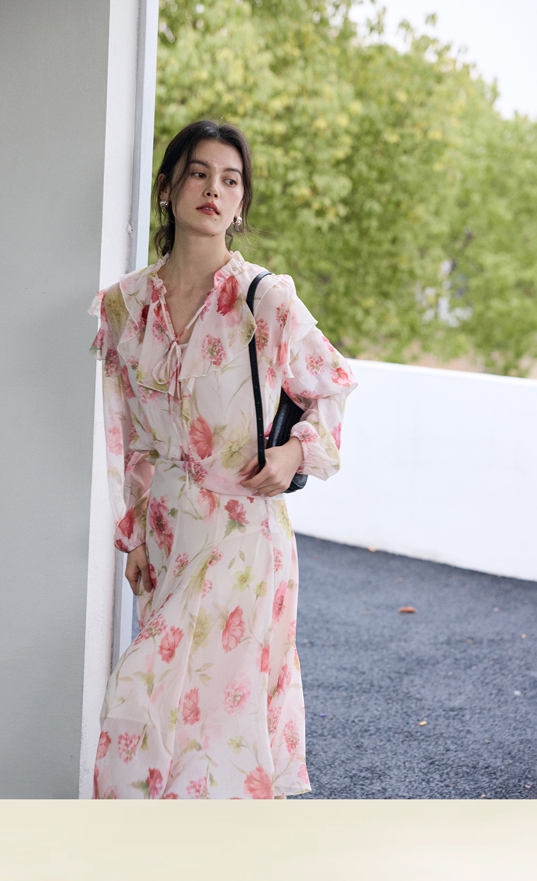 荷叶边印花宽松法式衬衫