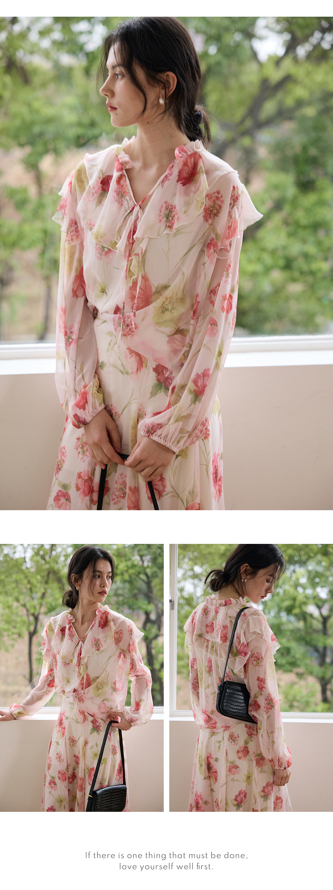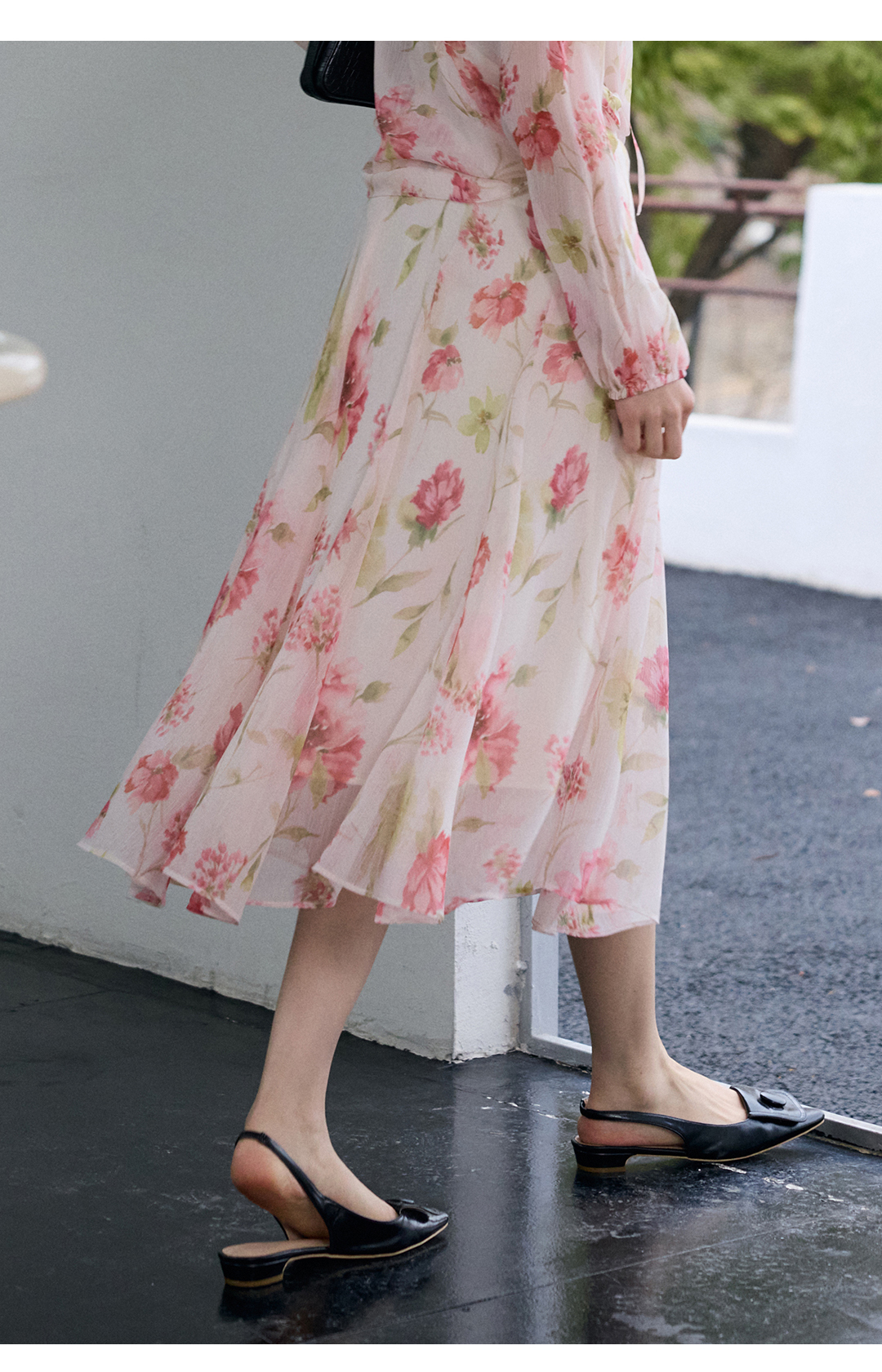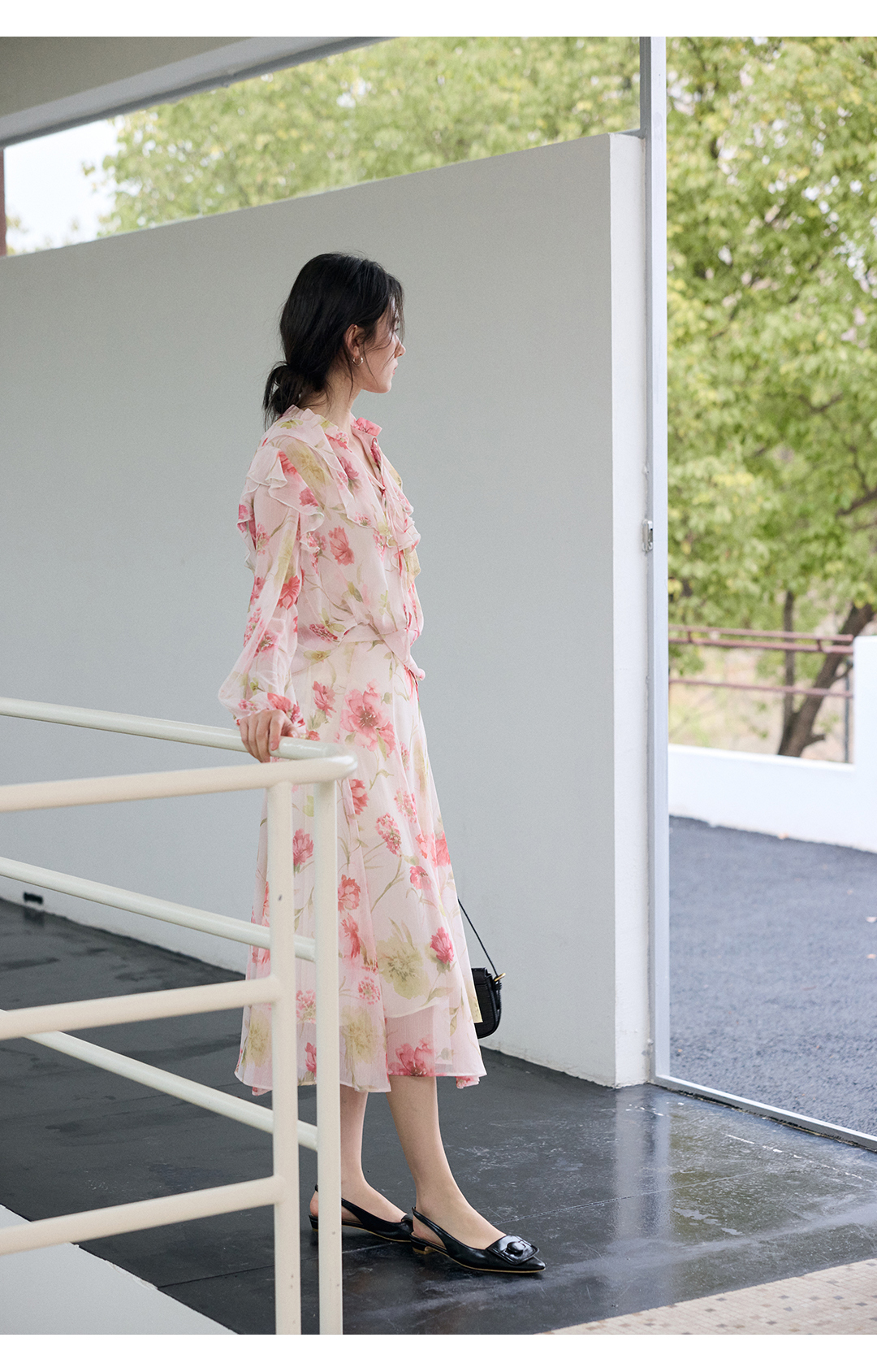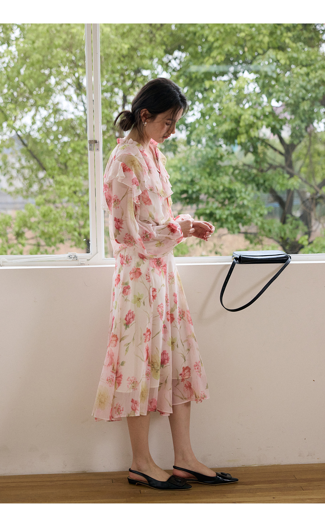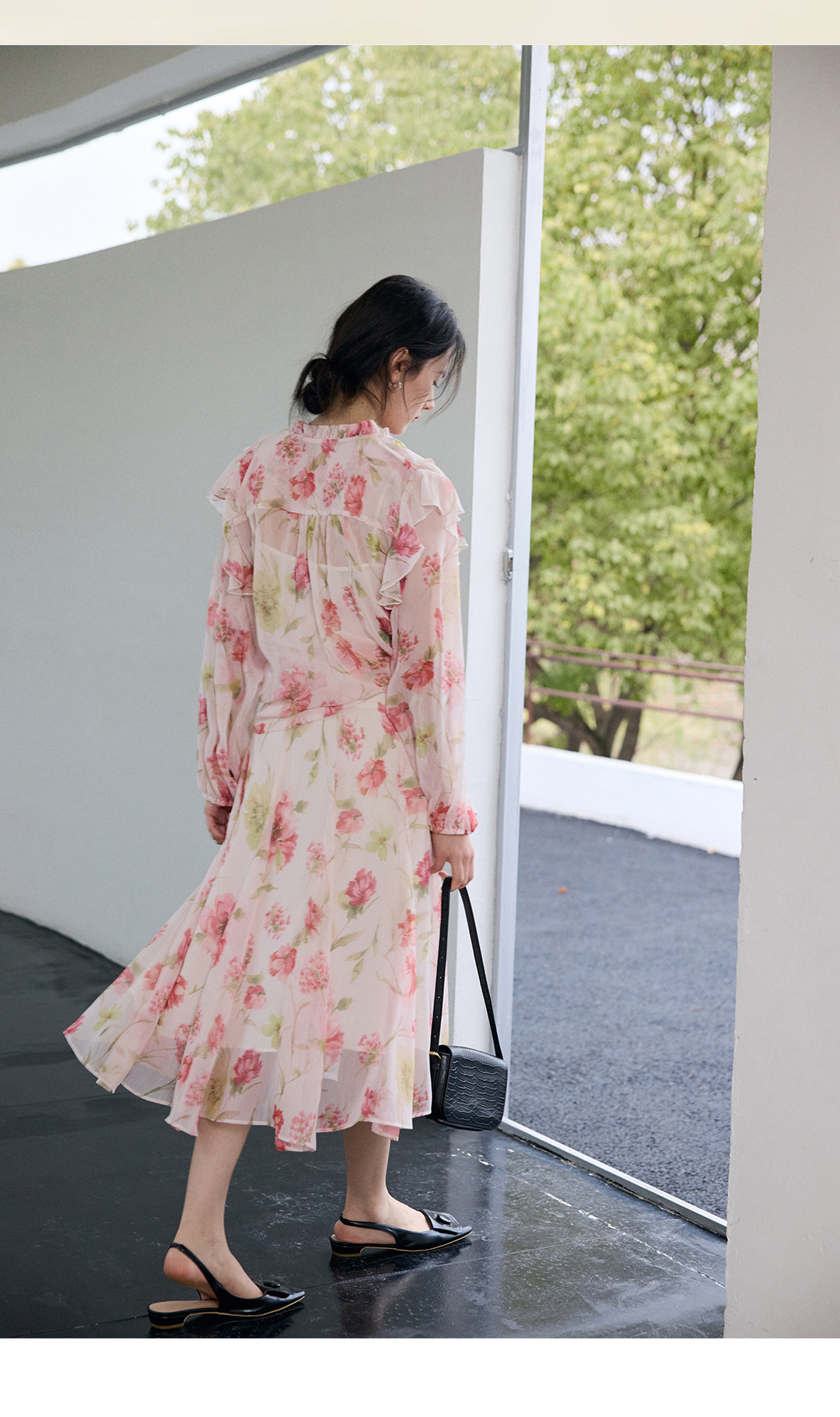 荷叶边印花宽松法式衬衫