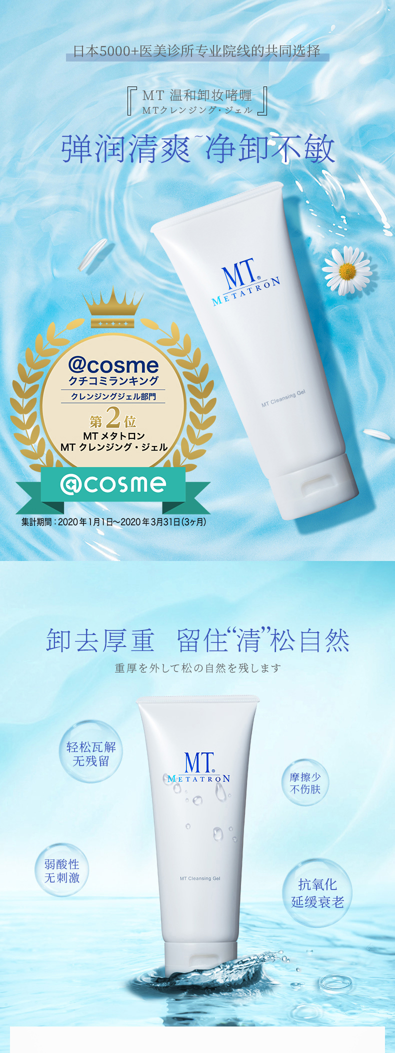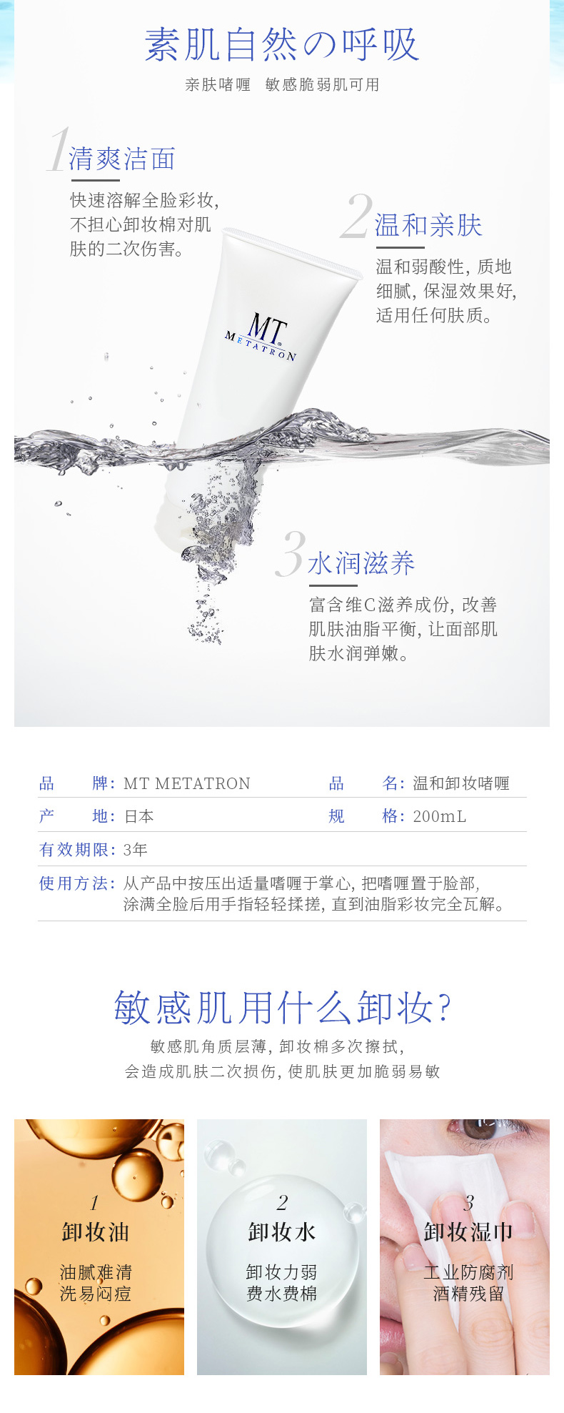 MT温和卸妆啫喱200ml 敏感肌深层清洁彩妆 毛孔洁肤无刺激