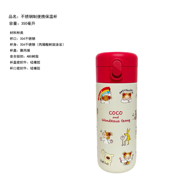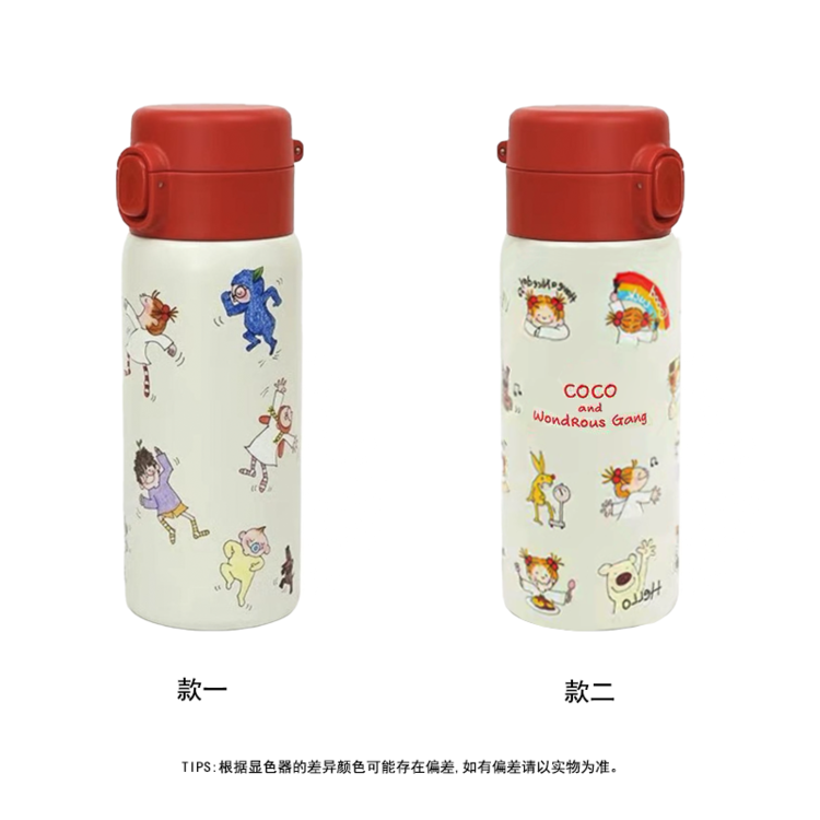 🌈限定特别版 不仅外观设计少女心满满 是看到心情就会大好的大笑女孩👧 可爱与保温我全都要‼️ G网售价200+ 性价比拉满Coco-chan 是一个喜欢番茄酱、吹口哨和红色靴子的女孩。每天都是和儿时玩伴Eddie,一直陪伴在我身边的Gusha,还有很多小伙伴一起的小冒险。每个人都喜欢和可可一起玩!今天,可可酱将继续一次令人兴奋的冒险,带来很多笑容!!真正出口的订单!!