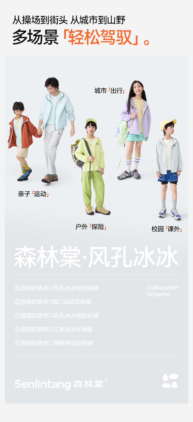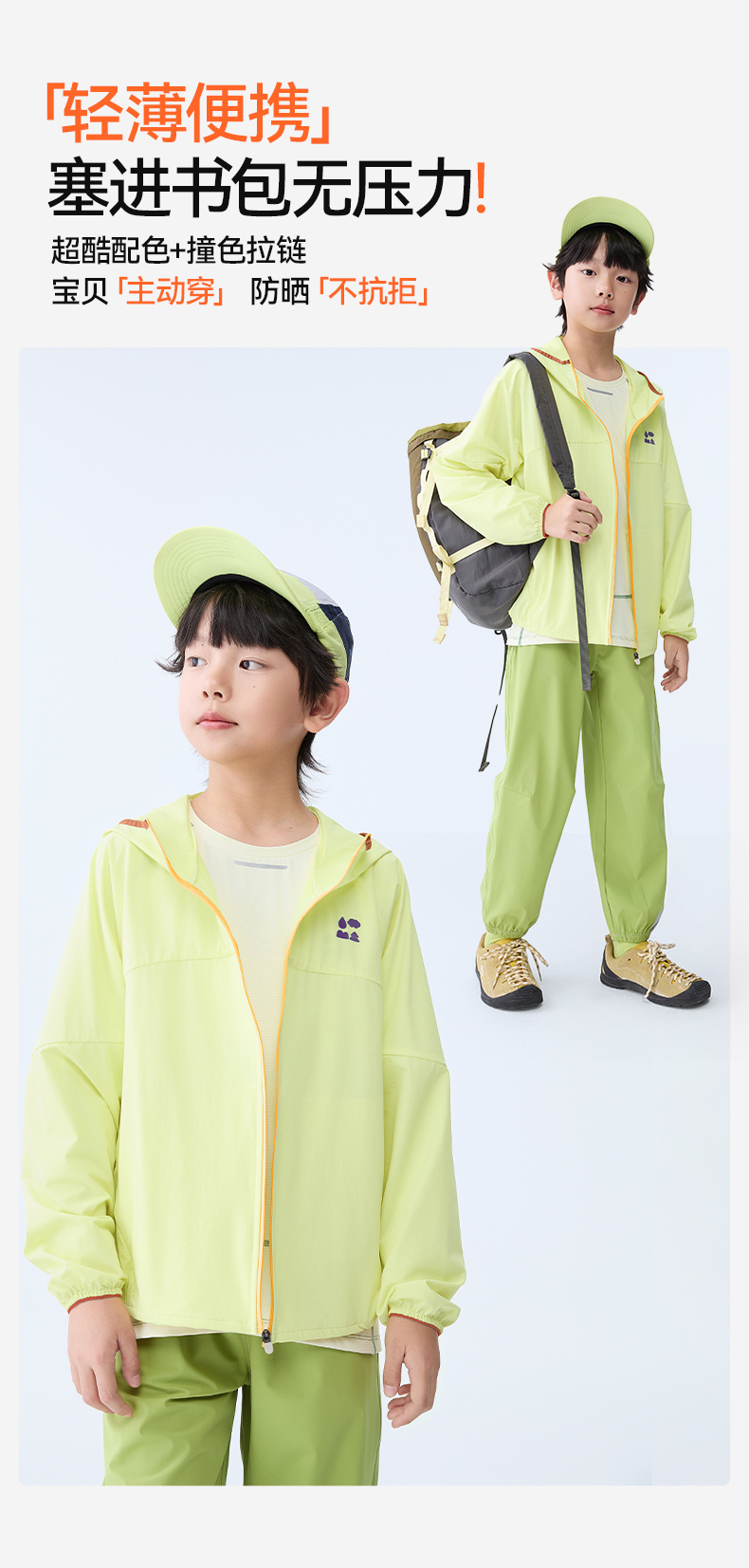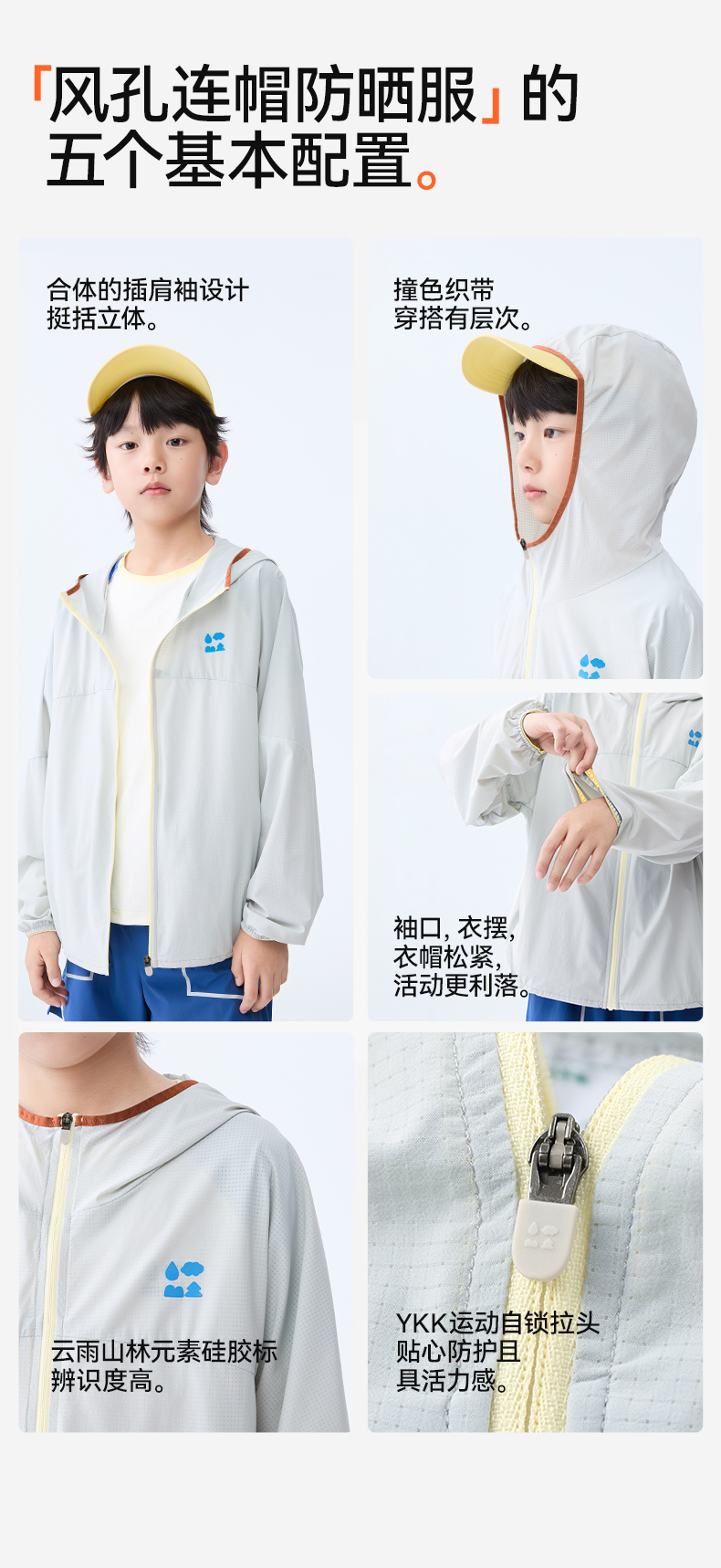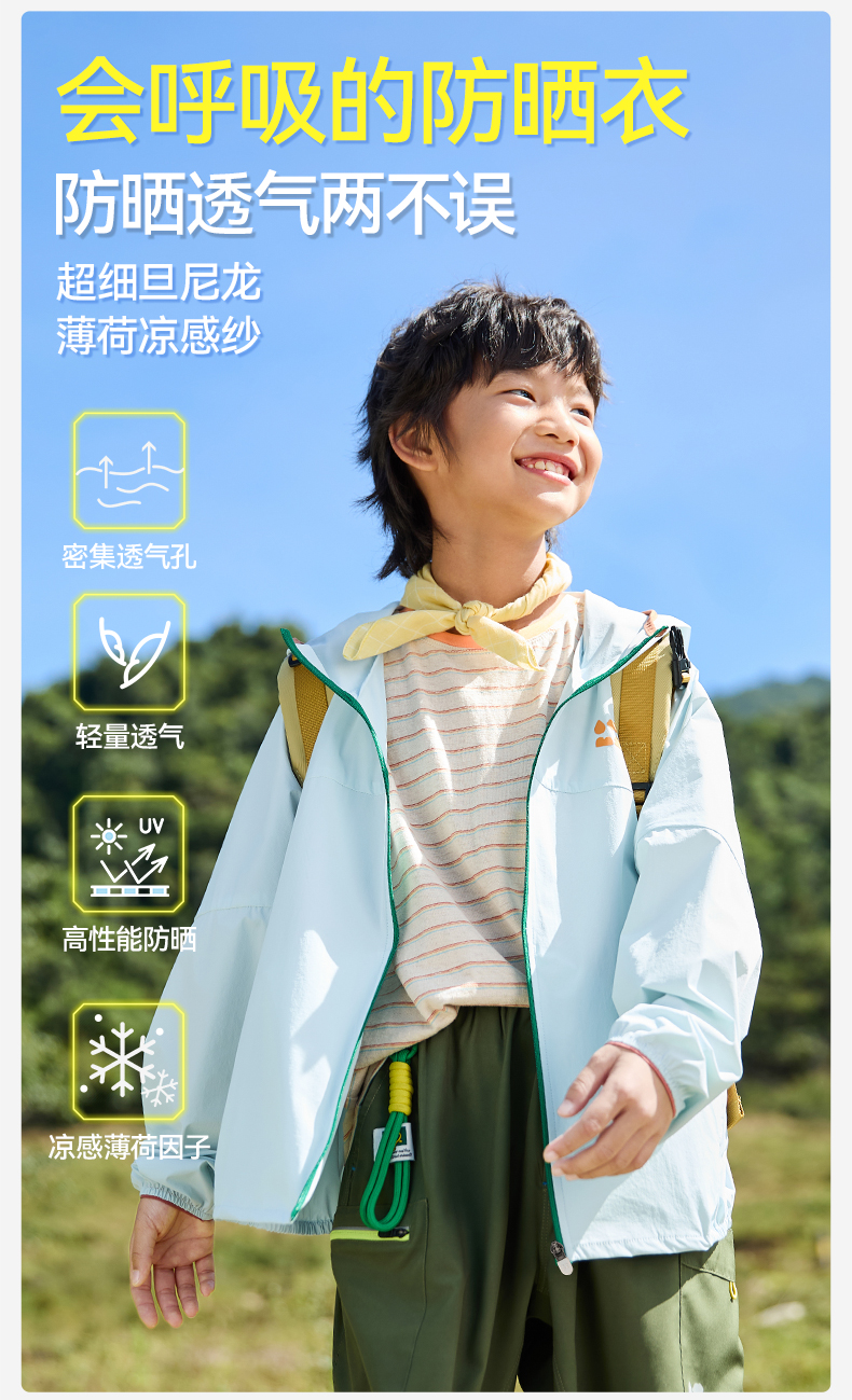 【风孔连帽防晒服】森林棠25夏款,儿童原纱防晒,凉感透气连帽防晒衣40822504【LA】