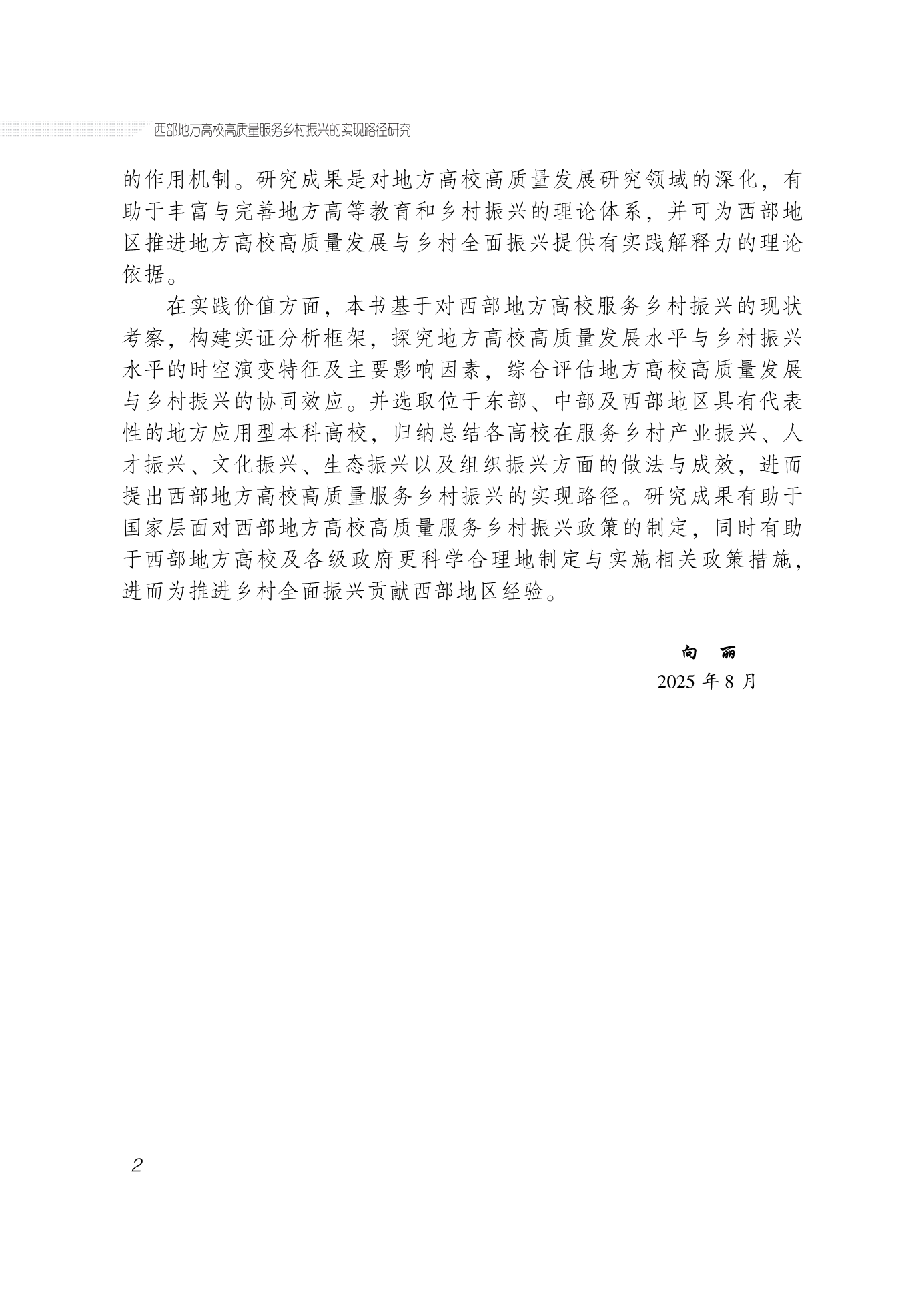 西部地方高校高质量服务乡村振兴的实现路径研究