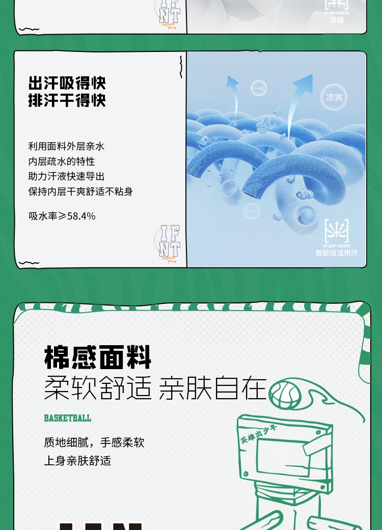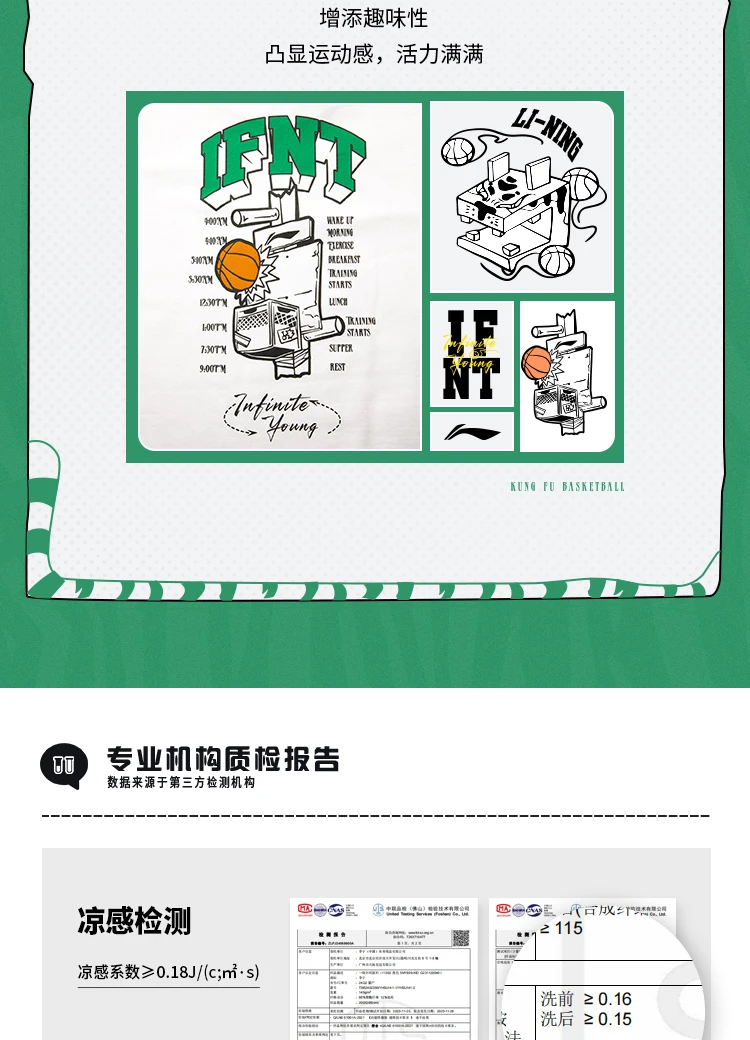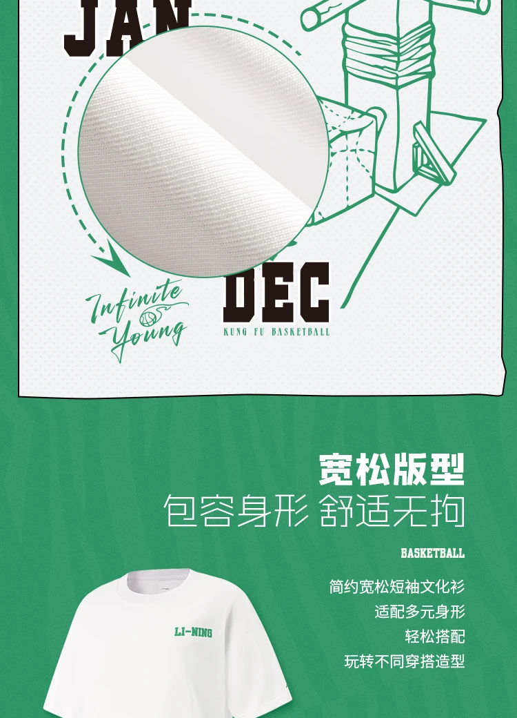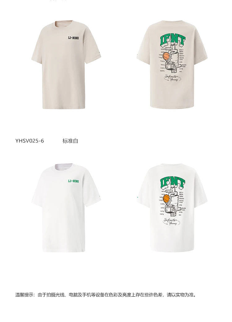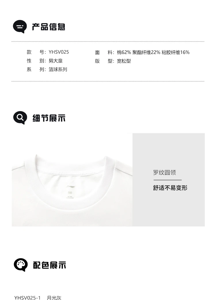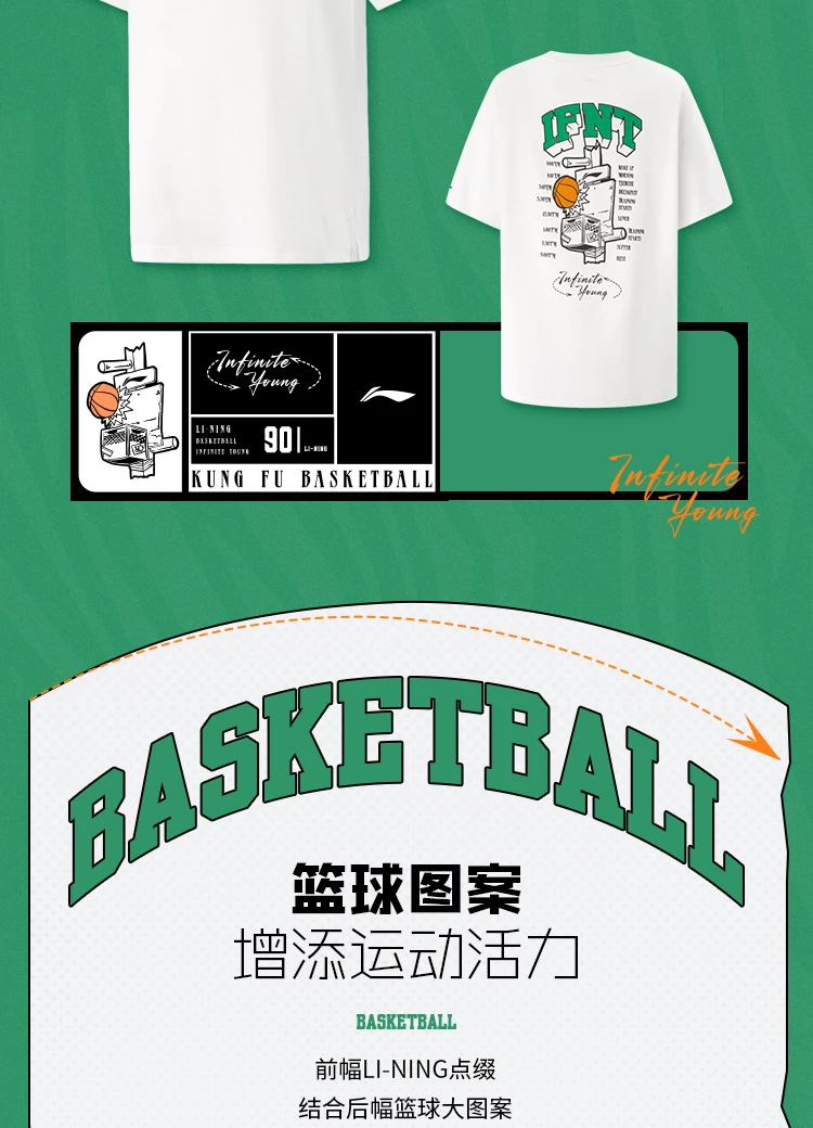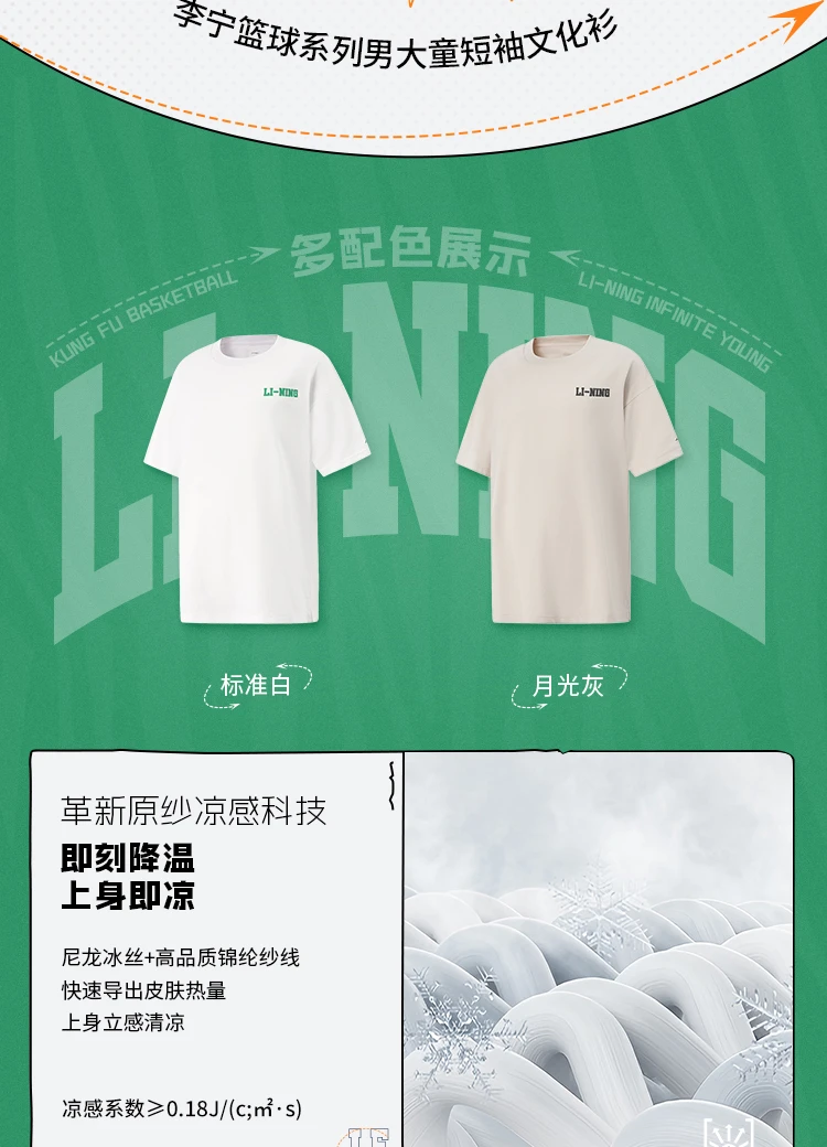 李宁男大童篮球系列冰感舒适吸湿排汗宽松短袖文化衫YHSV025