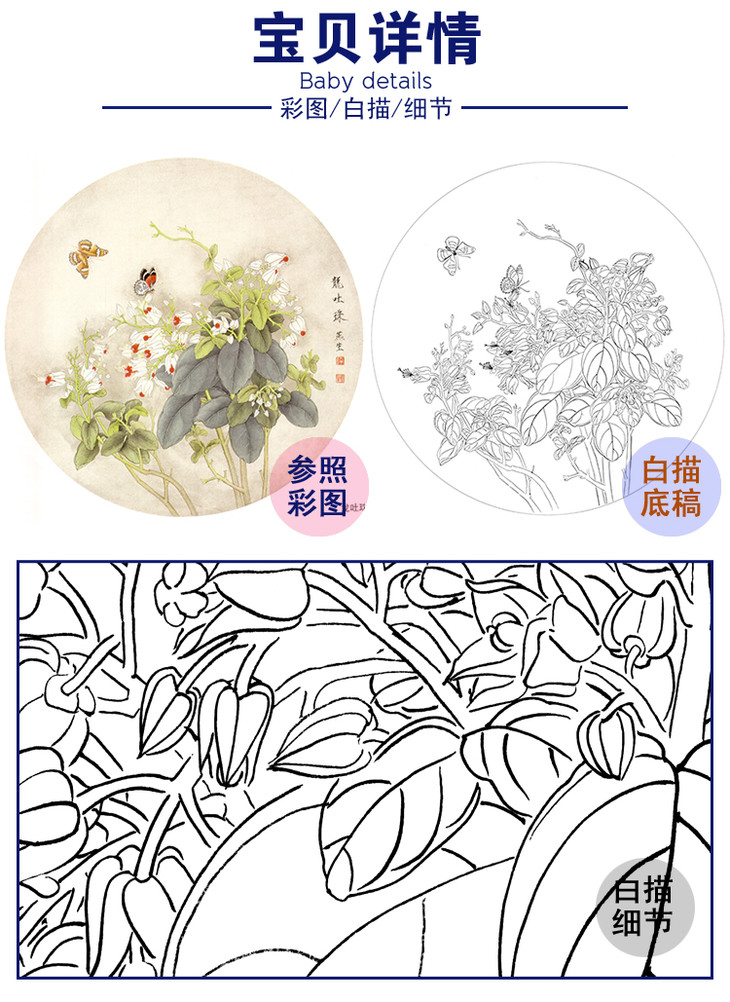 工笔花鸟白描底稿-梁燕生小品《龙吐珠》-多种白描尺寸可选-A386