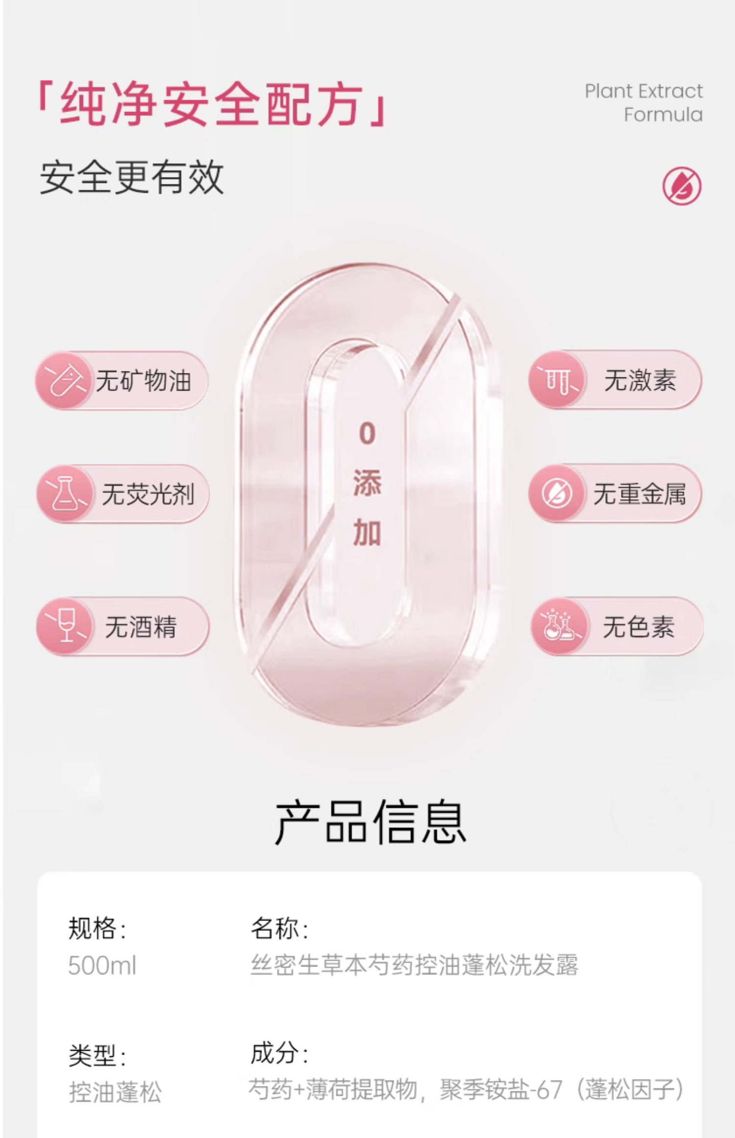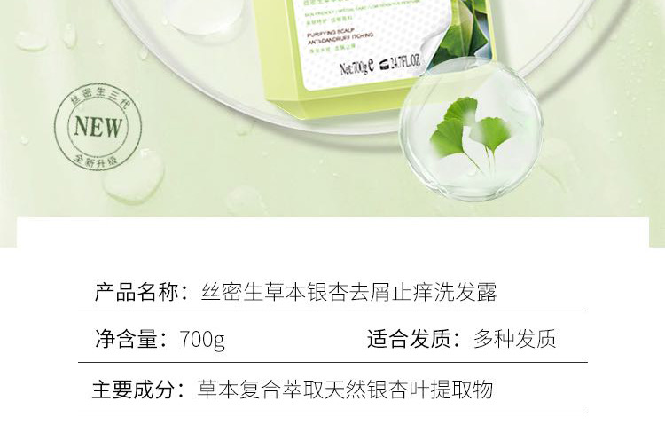 丝密生芍药控油蓬松/银杏去屑止痒持久留香家庭装清爽洗发水700ml
