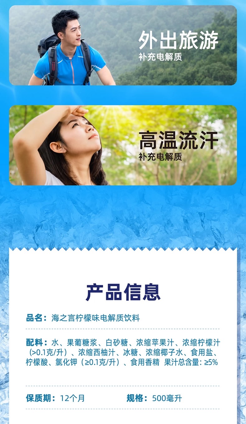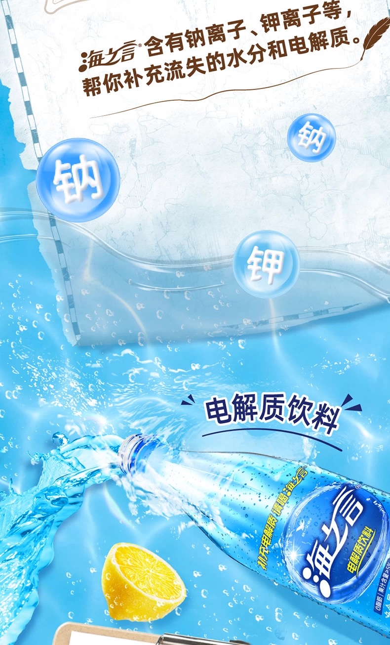 【统一海之言电解质水饮料柠檬味500ml*15瓶整箱】口感清爽 补充电解质 请喝海之言