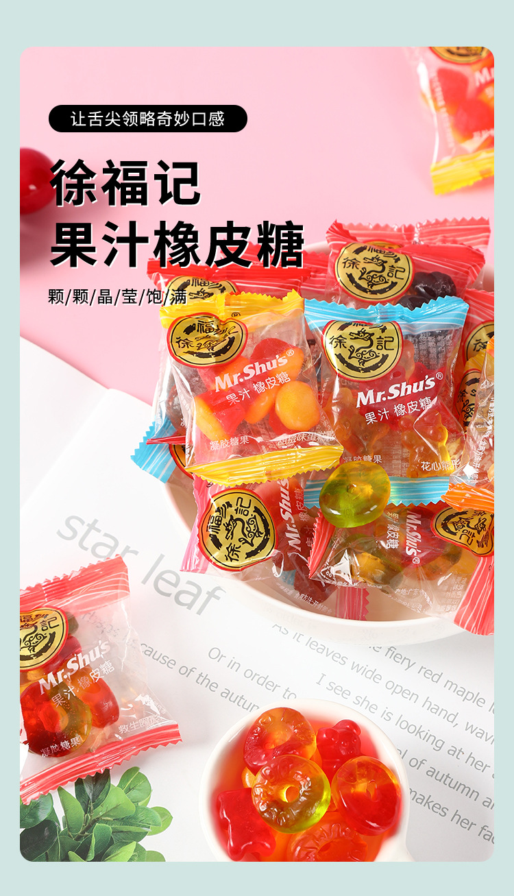 【颗颗晶莹饱满,让舌尖领略奇妙口感~】徐福记果汁橡皮糖 小包装500g软糖 儿童生日糖果 散装小零食结婚喜糖-QQ