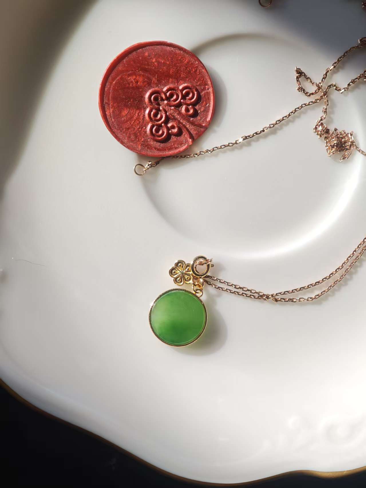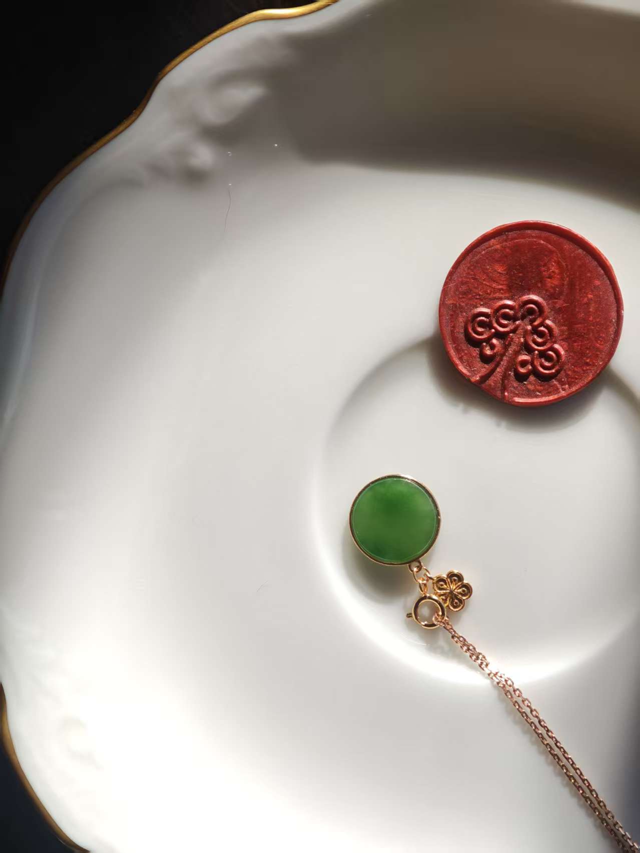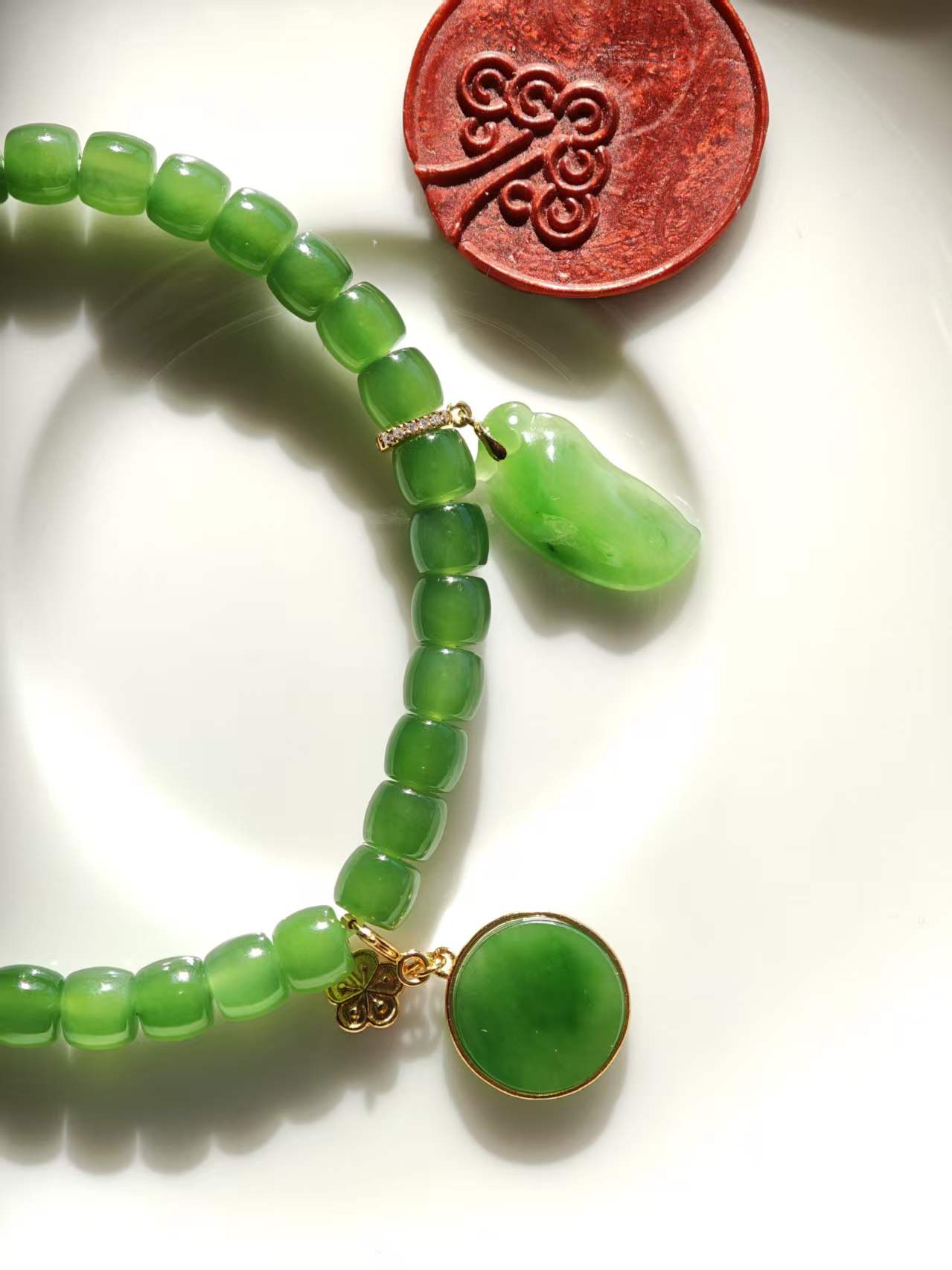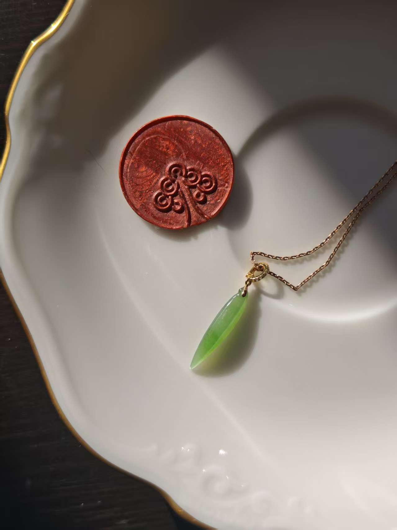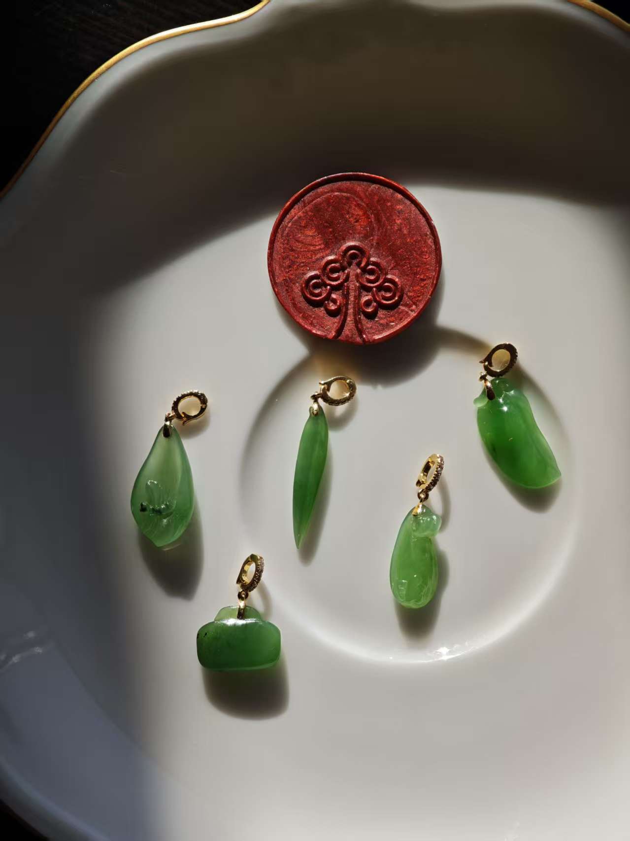【果阳绿碧玉小件·14k金镶】