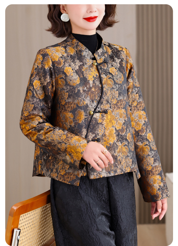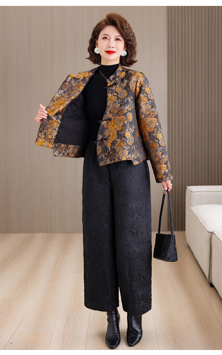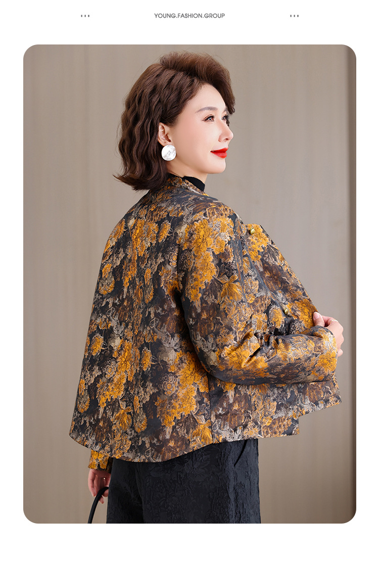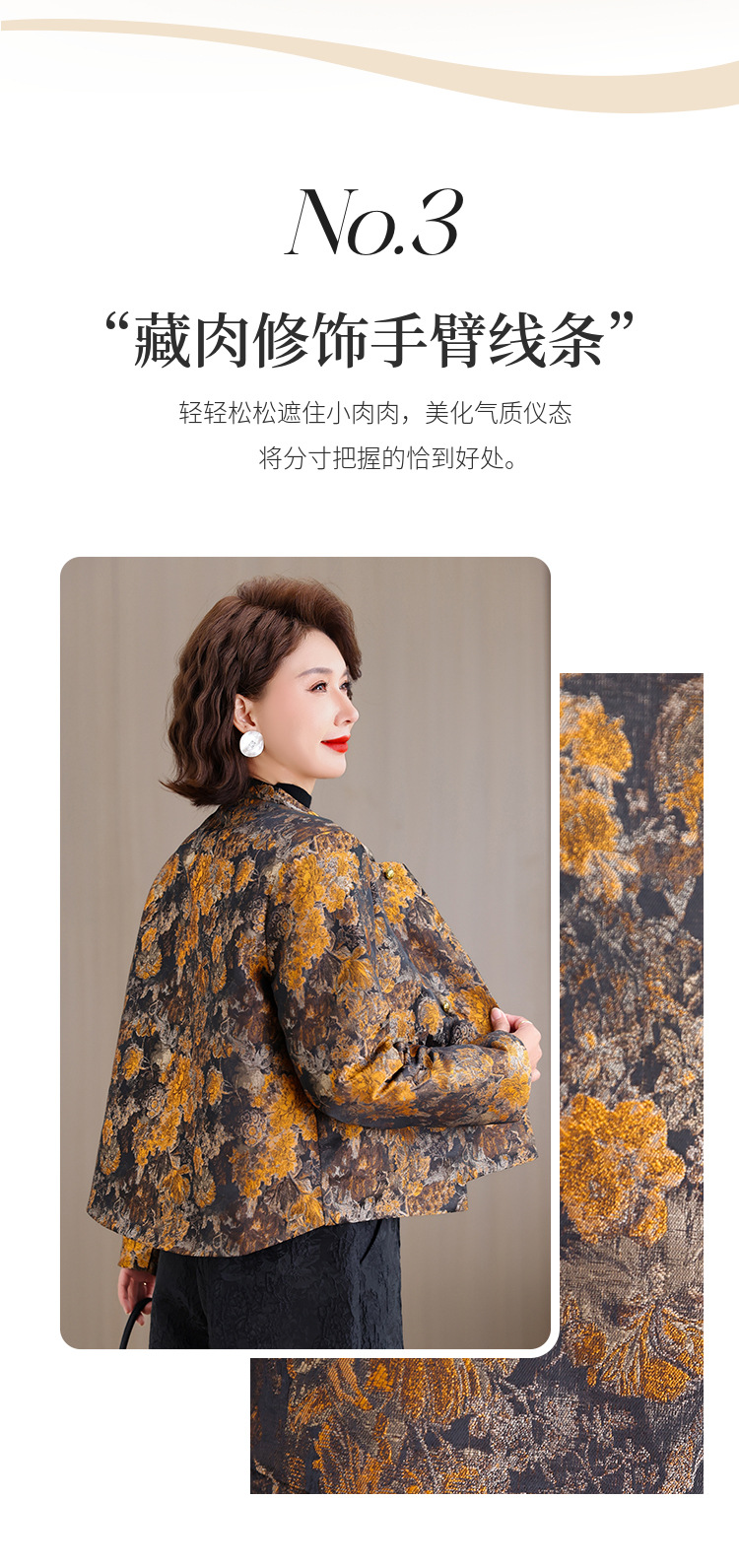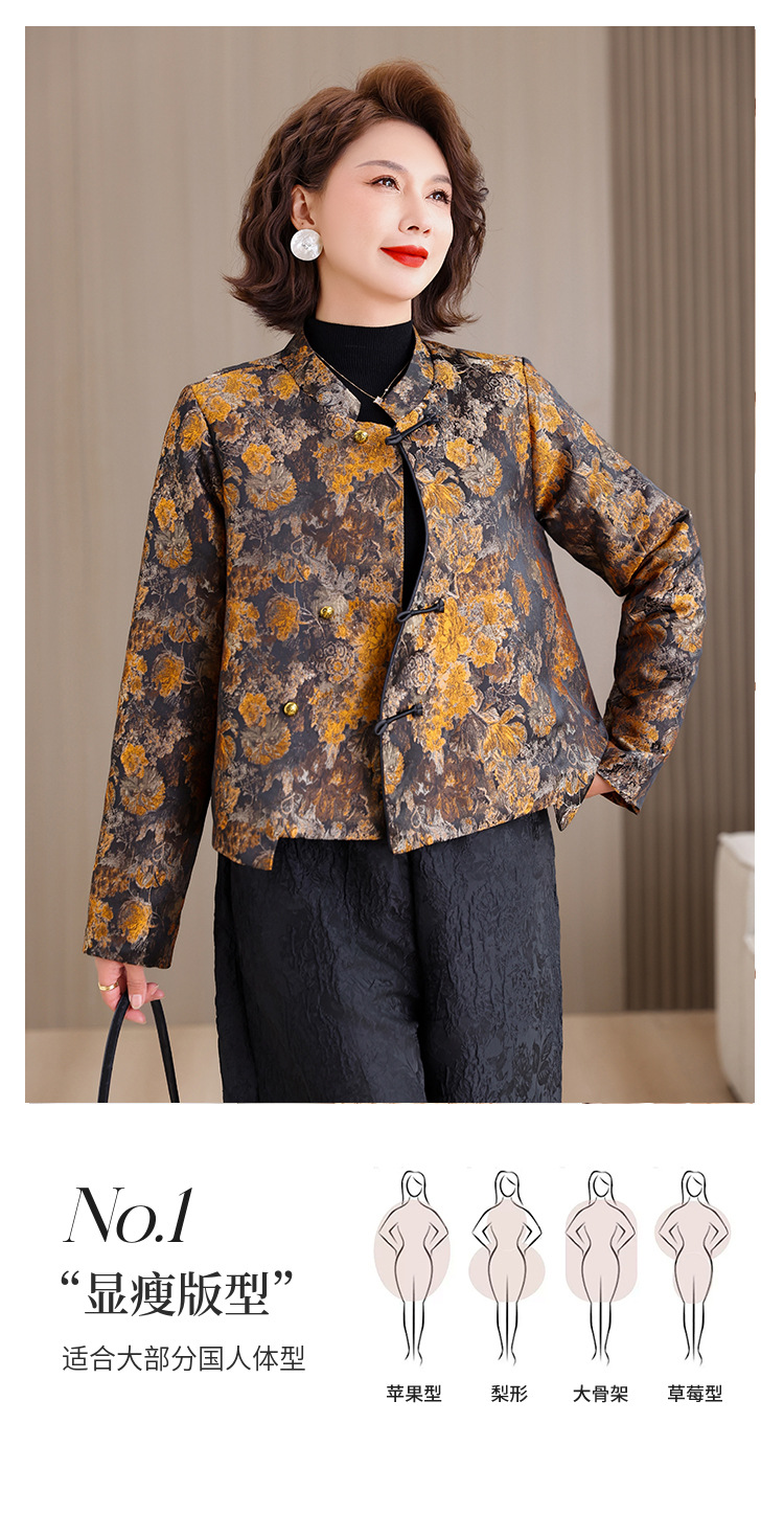 2025新款新中式妈妈国风外套女提花盘扣立领夹棉高端洋气百搭外套