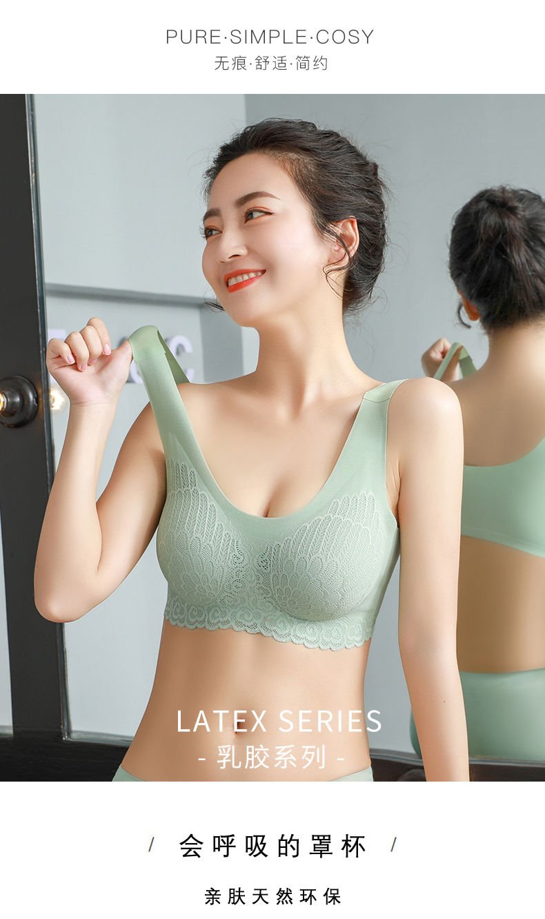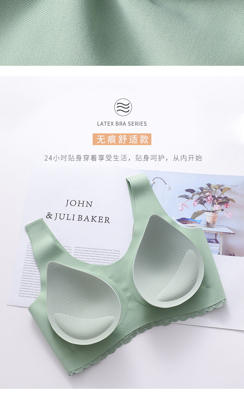 泰国乳胶内衣女聚拢无痕无钢圈运动背心式防下垂收副乳睡眠文胸罩