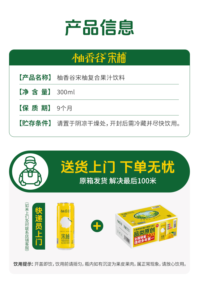 【新品】柚香谷宋柚汁罐装原箱整箱发货携带方便新品24罐装