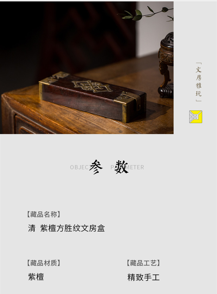 清代 紫檀方胜纹拜帖盒
