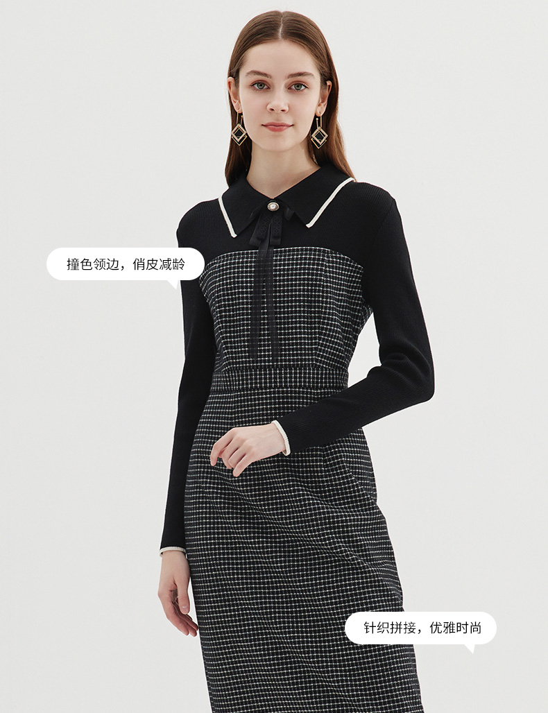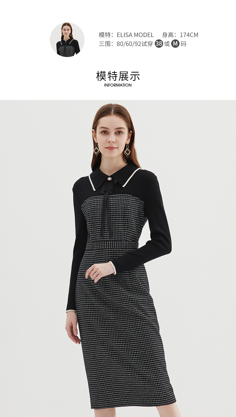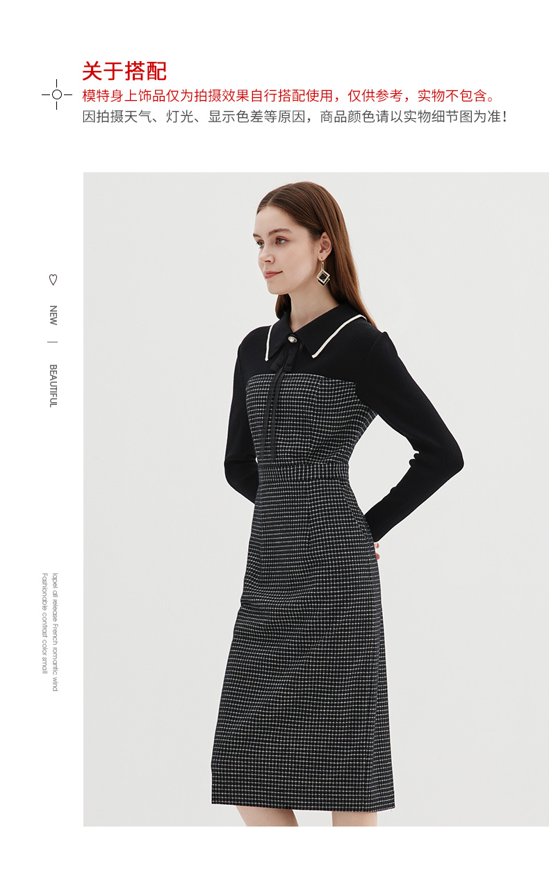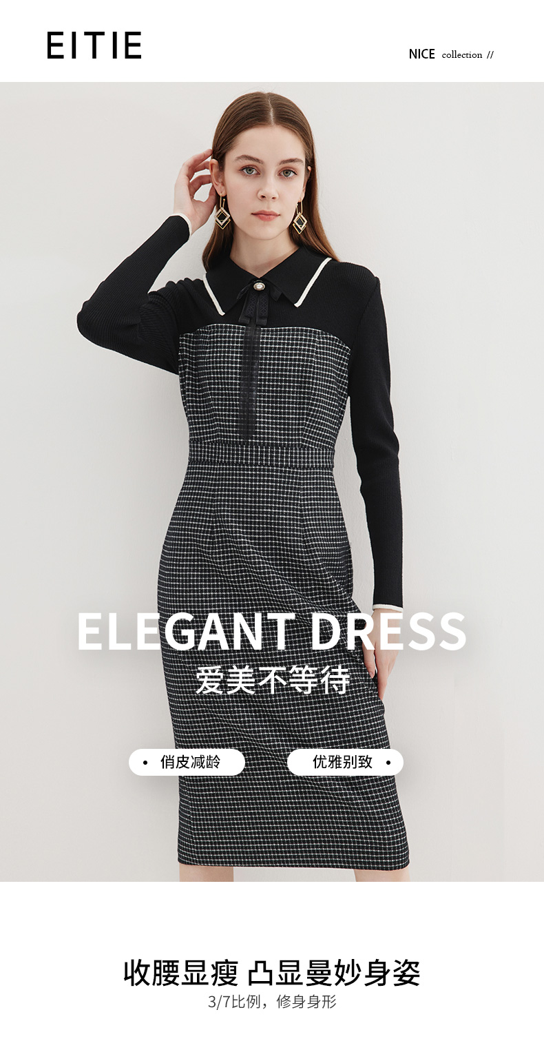 EITIE爱特爱冬季新款气质时尚收腰拼接连衣裙7207916