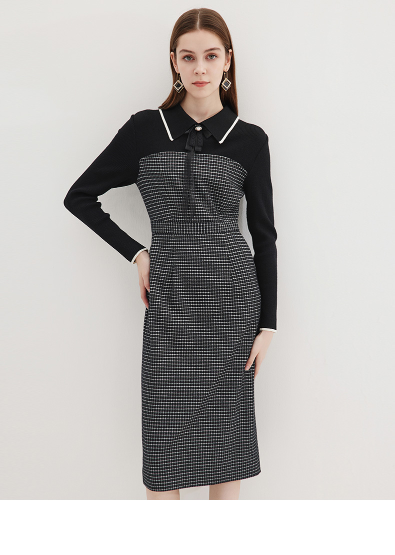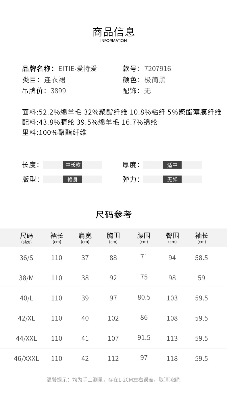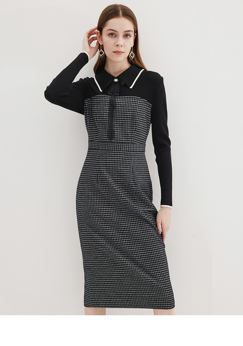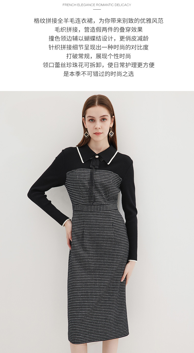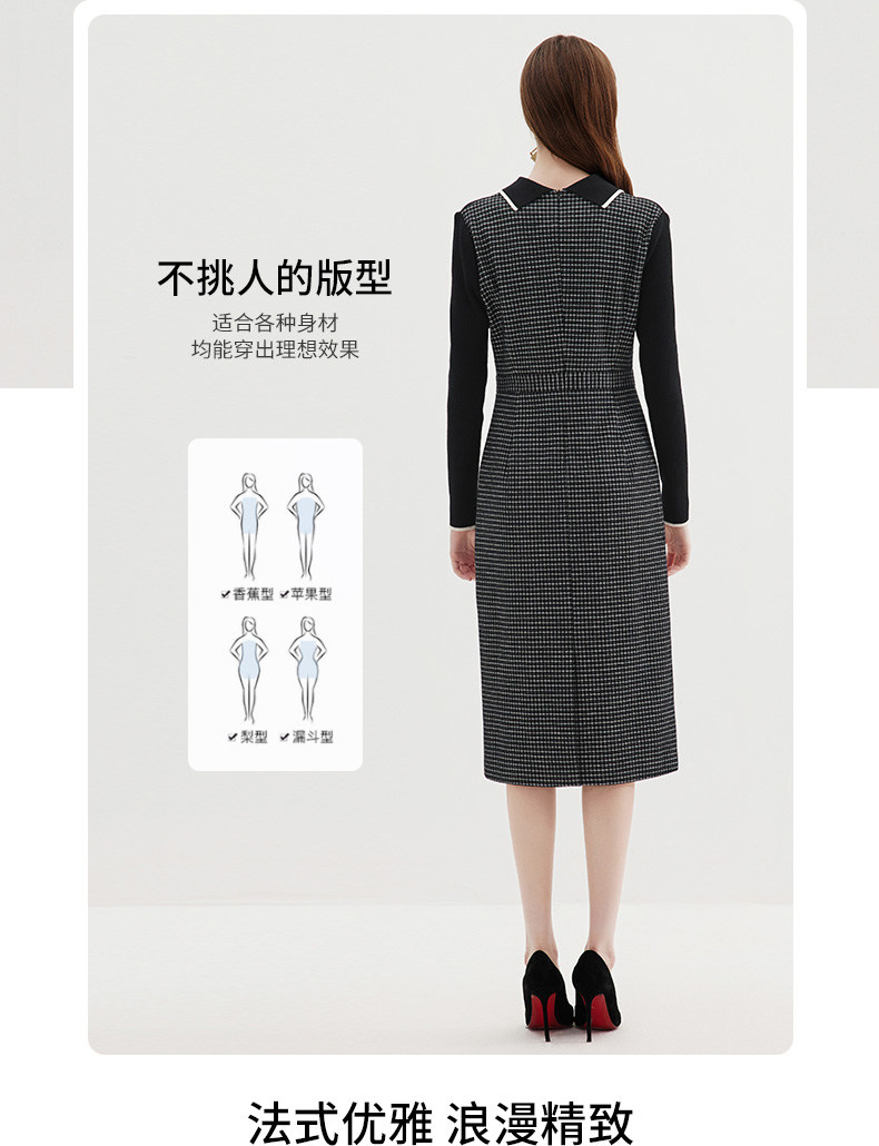EITIE爱特爱冬季新款气质时尚收腰拼接连衣裙7207916