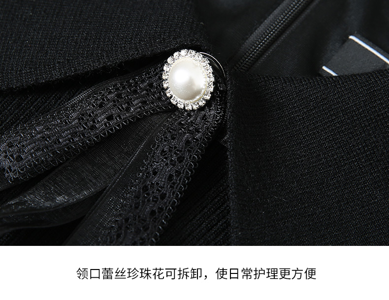 EITIE爱特爱春季新款气质翻领镂空蕾丝七分袖连衣裙女中裙A2007405