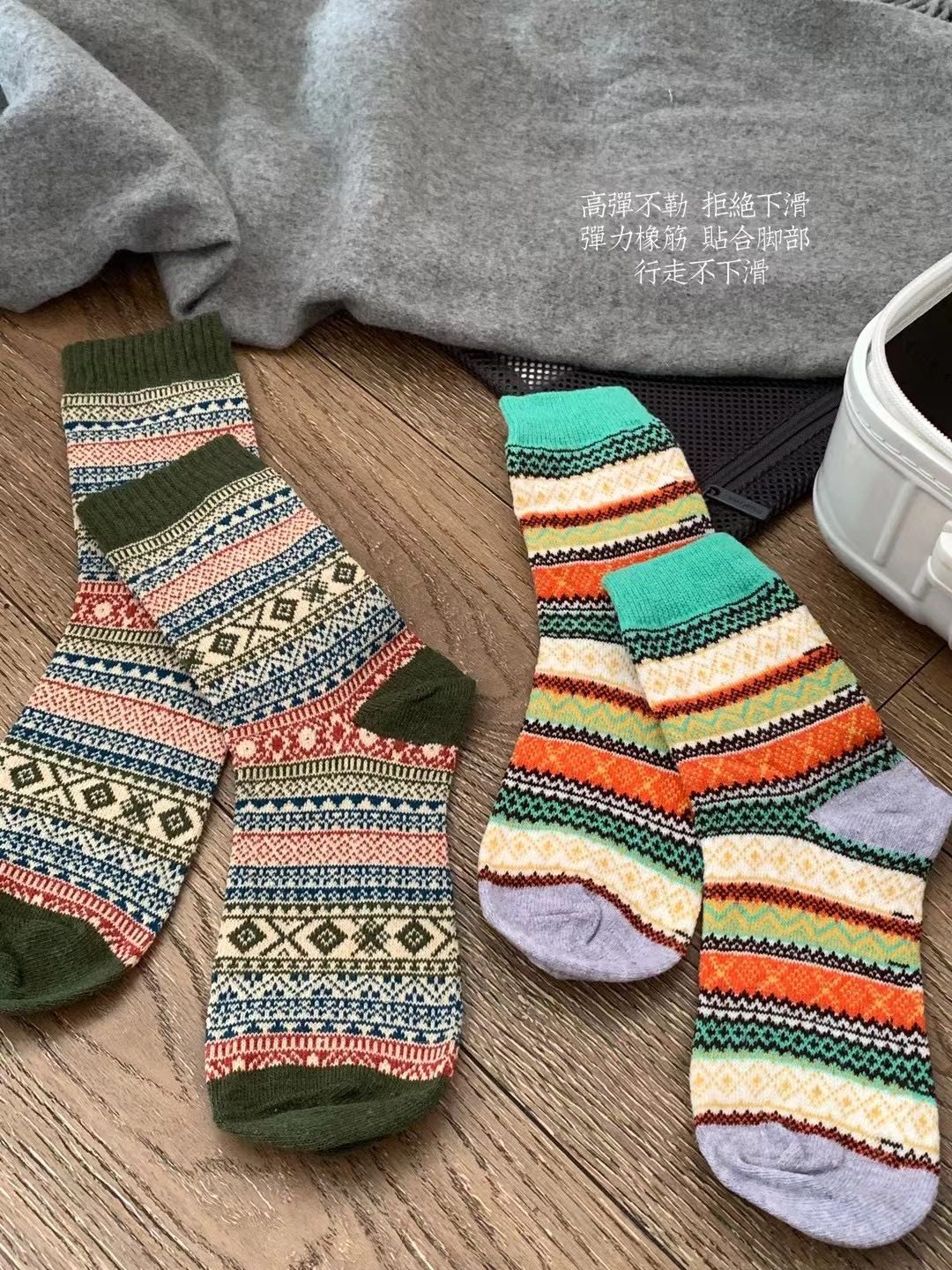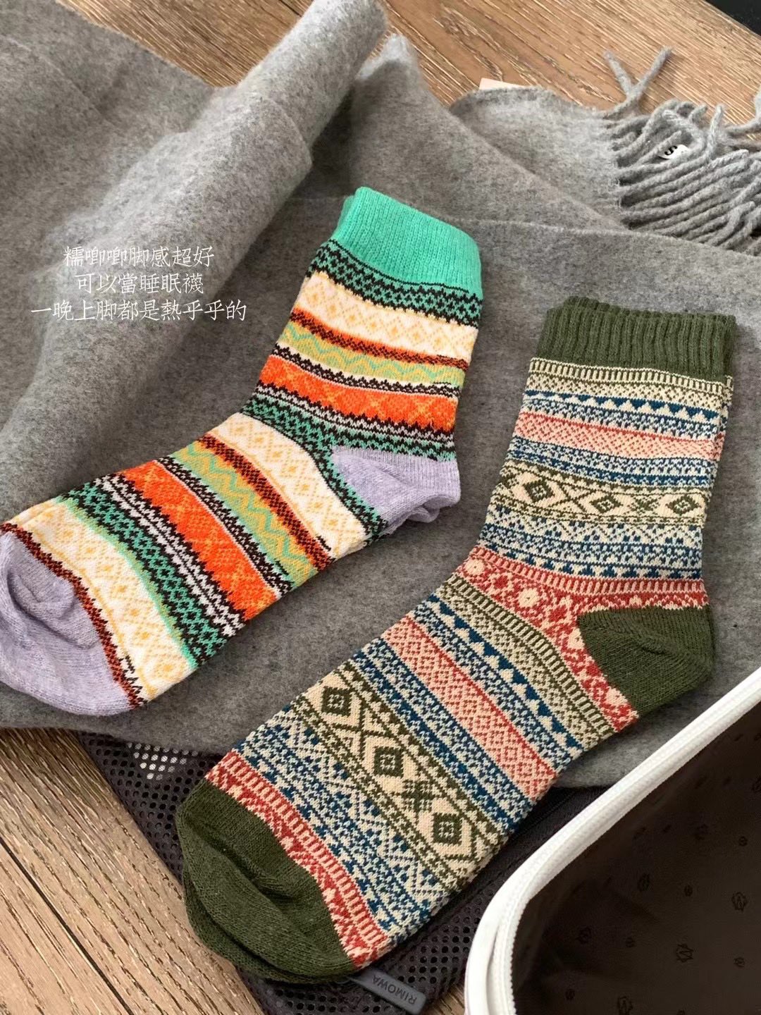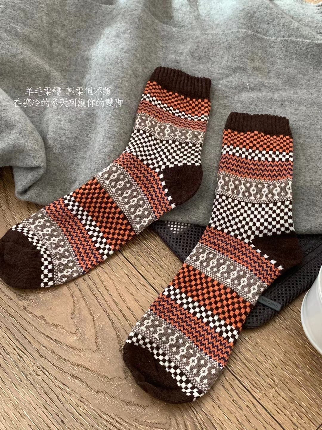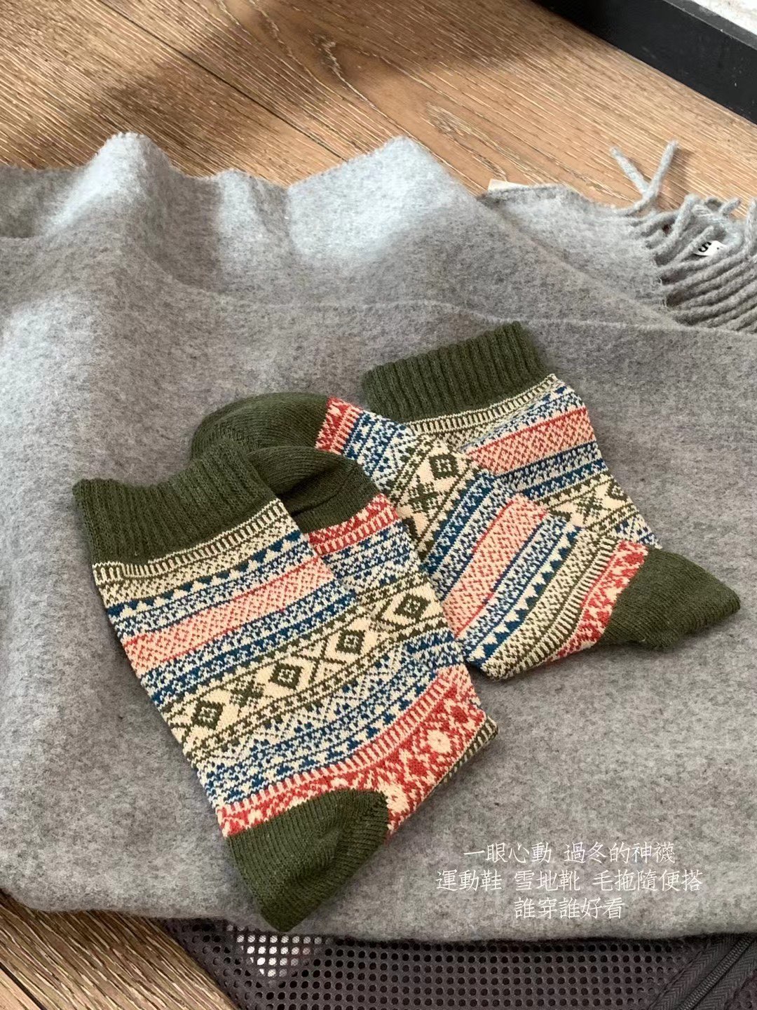 好看且保暖 承包整个冬天温暖 冬天应该追求温度 怎么穿怎么好看 !!一盒5双,U&GG图腾羊毛袜冬季最爱的保暖羊毛袜~最近实在太喜欢这些可爱的羊毛袜了 名副其实的搭配神器 看着花其实超级好搭配~每个颜色都超美,关键还好搭配 任意搭配起来就很好看 起到画龙点睛的效果~小袜子关键是羊毛材质、做工精细,保暖又舒适礼盒五双装长筒袜地板袜