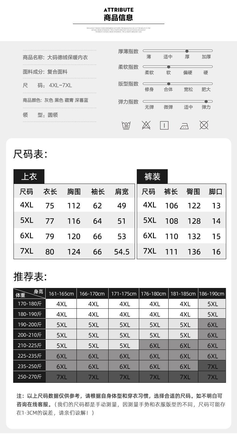 【绵羊毛】【新款DPD】大依优型大码男装保暖套装内衣弹力加绒舒适保暖秋衣秋裤