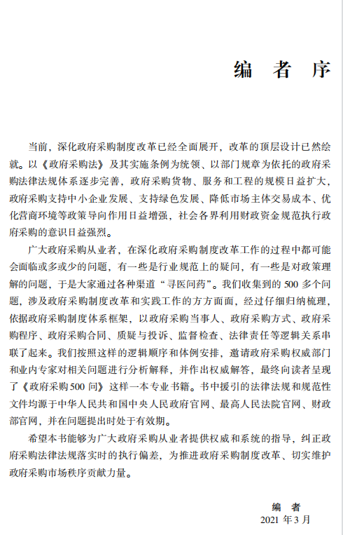 本书由中国政府采购杂志社主编。汇集了广大政府采购从业者在深化政府采购制度改革和从事实践工作过程中遇到的方方面面的问题,根据政府采购制度体系框架,将这些问题以政府采购当事人、政府采购方式、政府采购程序、政府采购合同、质疑与投诉、监督检查、法律责任等逻辑关系串联起来,并邀请政府采购权威部门和业内专家进行分析解释,作出权威解答,希望可以为广大政府采购从业者提供权威、系统的指导。