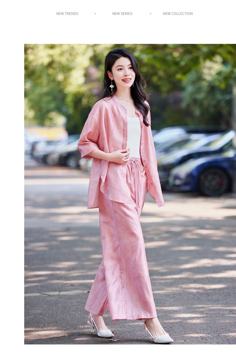 时尚洋气防晒衬衫,天丝阔腿裤两件套HR-SYY2608