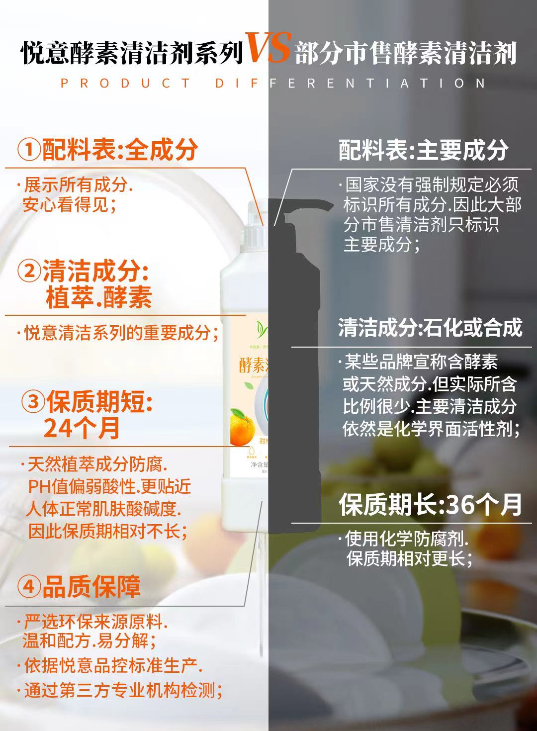 悦意酵素洗碗液 950ml/瓶 植物萃取 温和配方