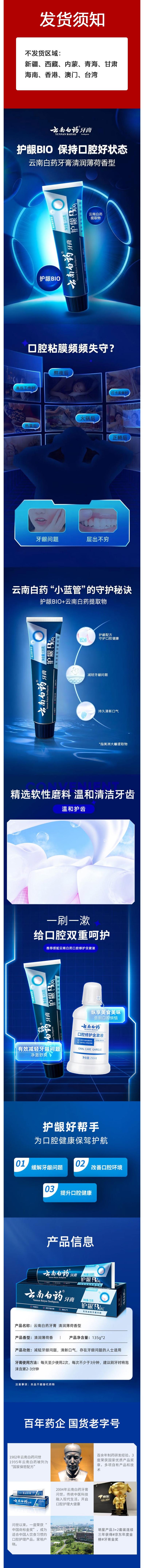云南白药 牙膏活性肽清润薄荷135g*2 1070608636