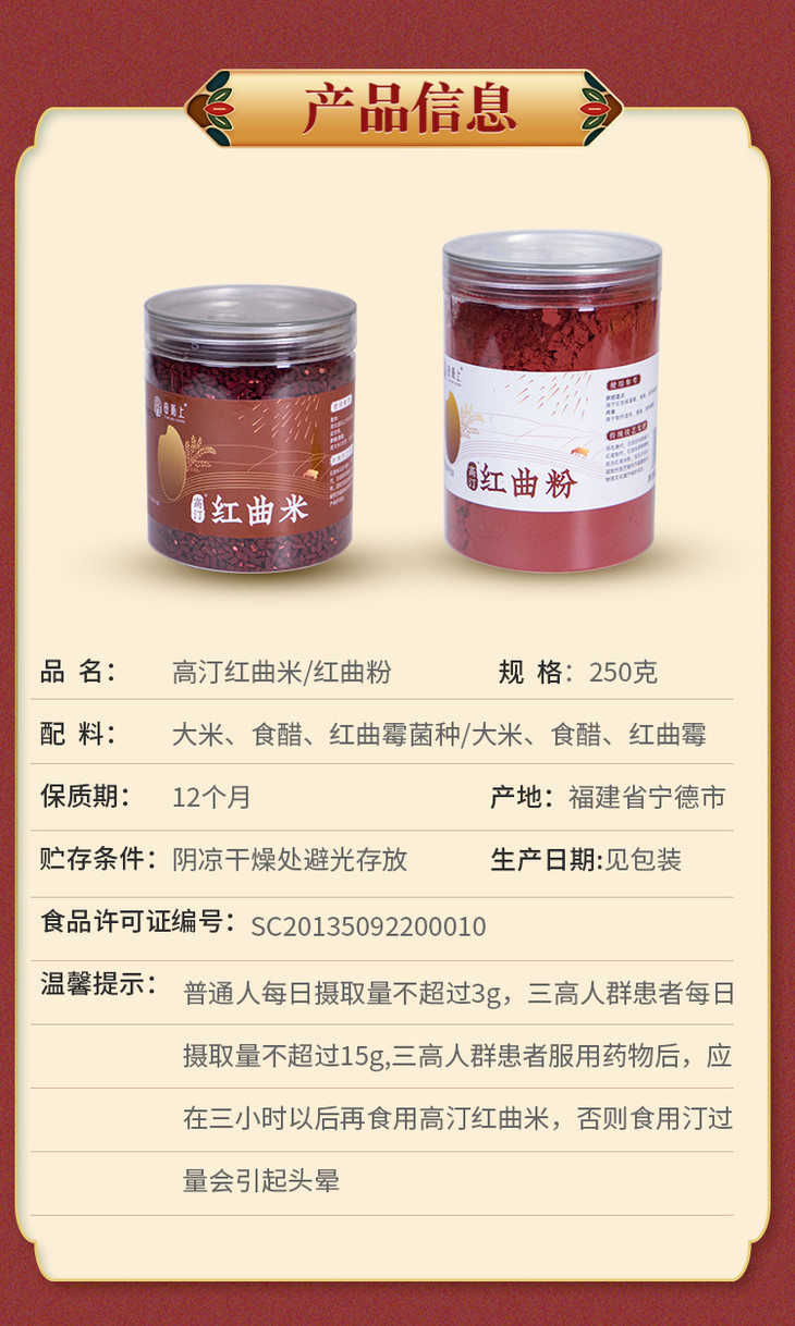 净含量:红曲米250g*1瓶、红曲粉250g*1瓶