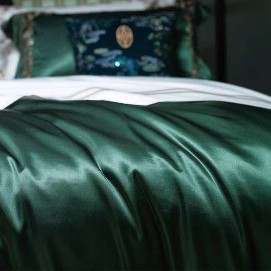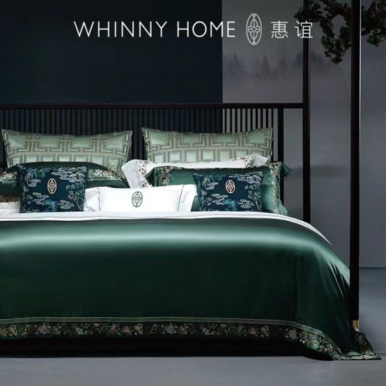 惠谊新中式100%桑蚕丝真丝手工刺绣四件套 翡翠凝香