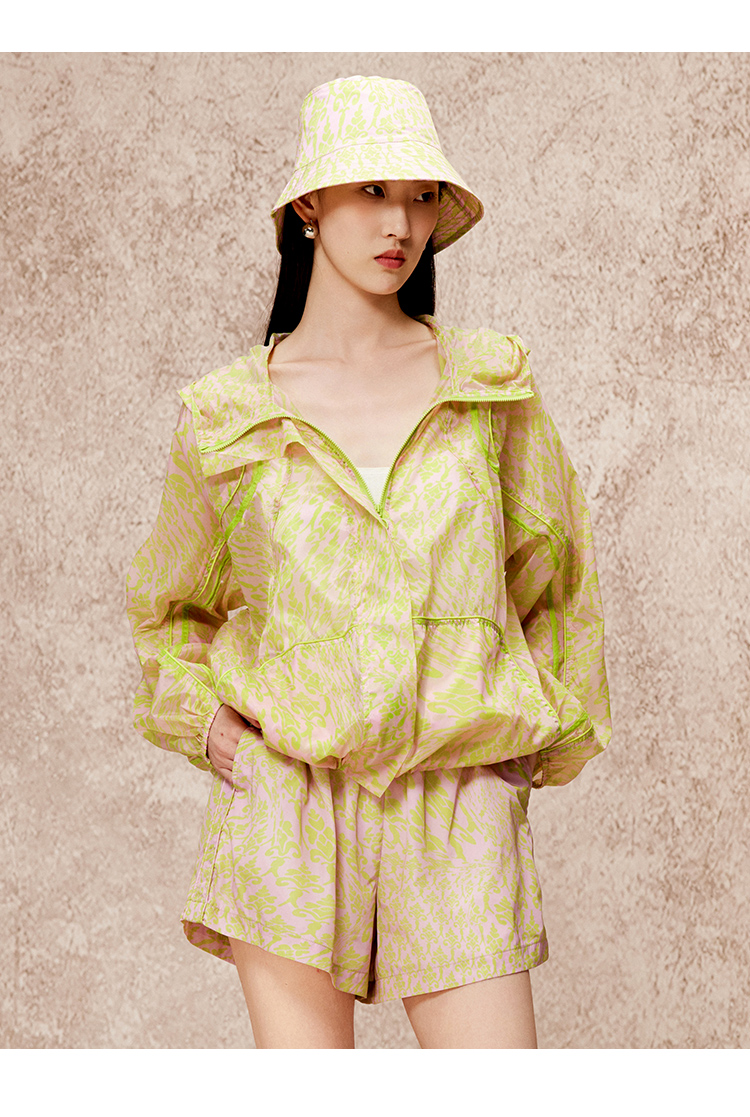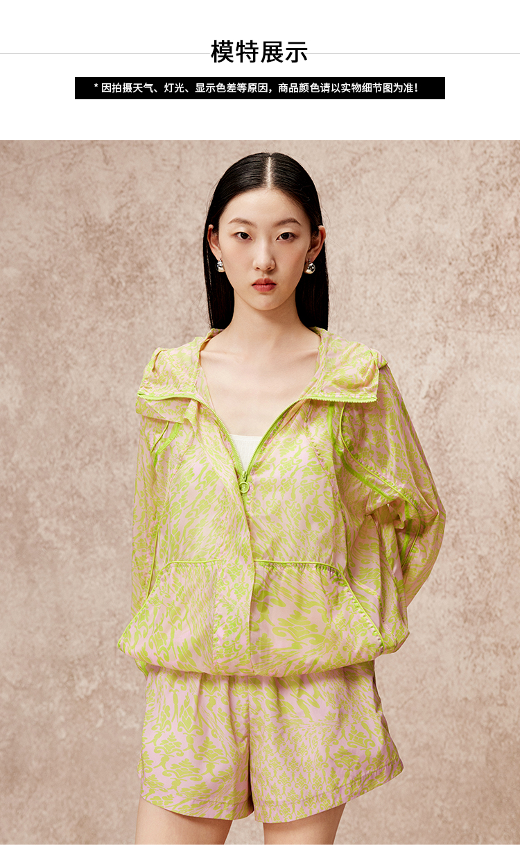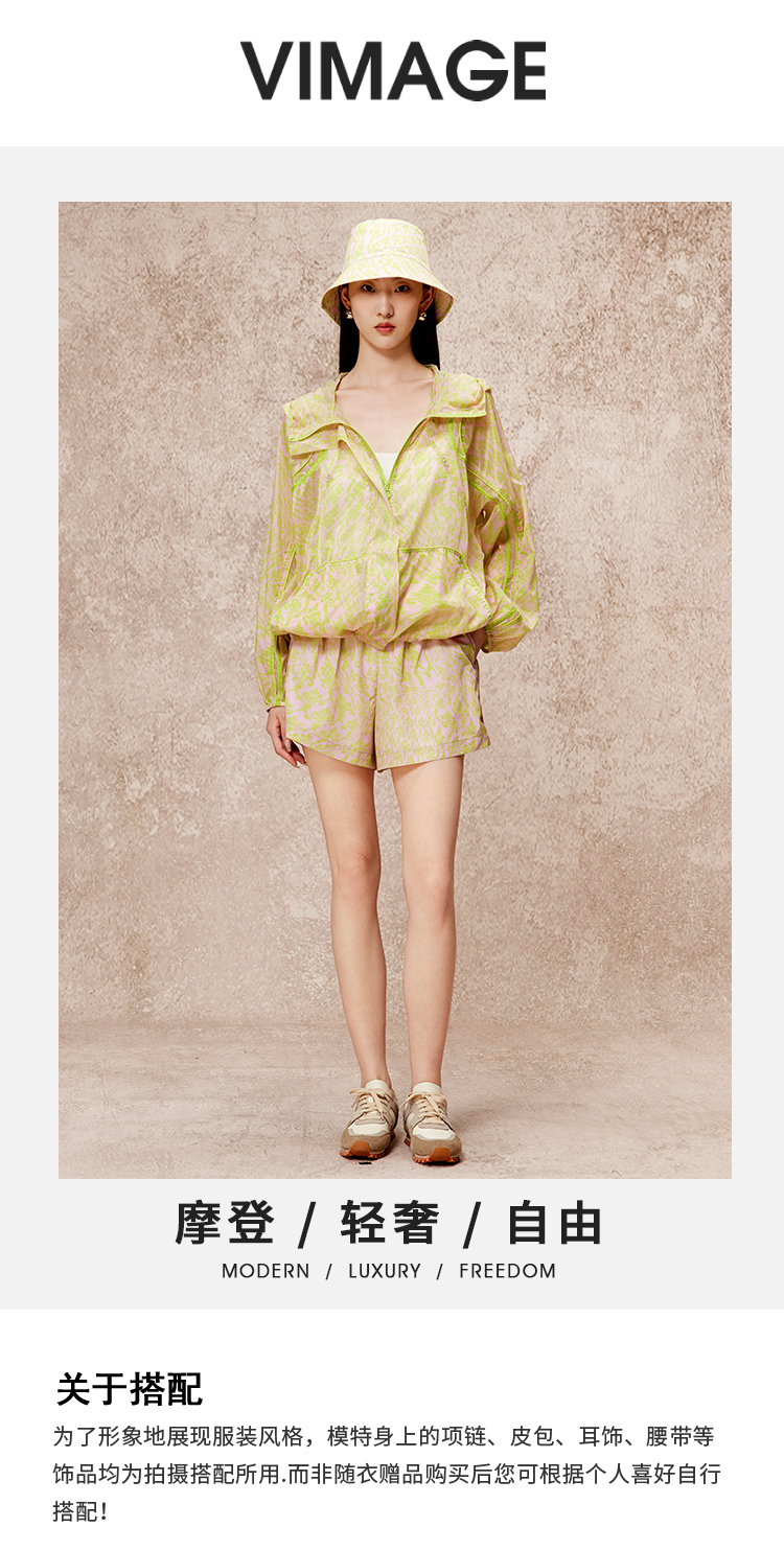 VIMAGE纬漫纪时尚休闲运动风印花防晒连帽外套秋季新款(配帽子)V2203801