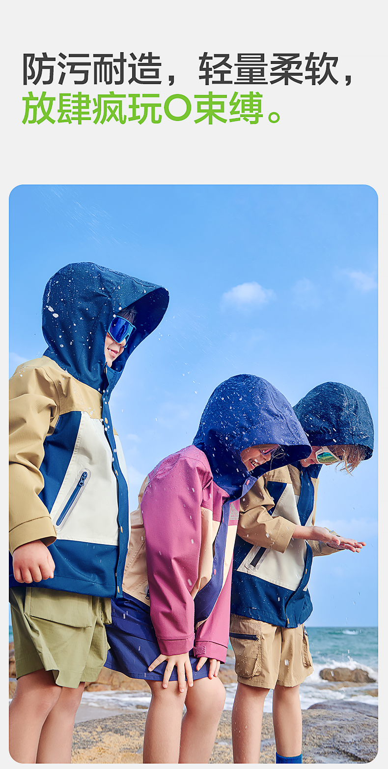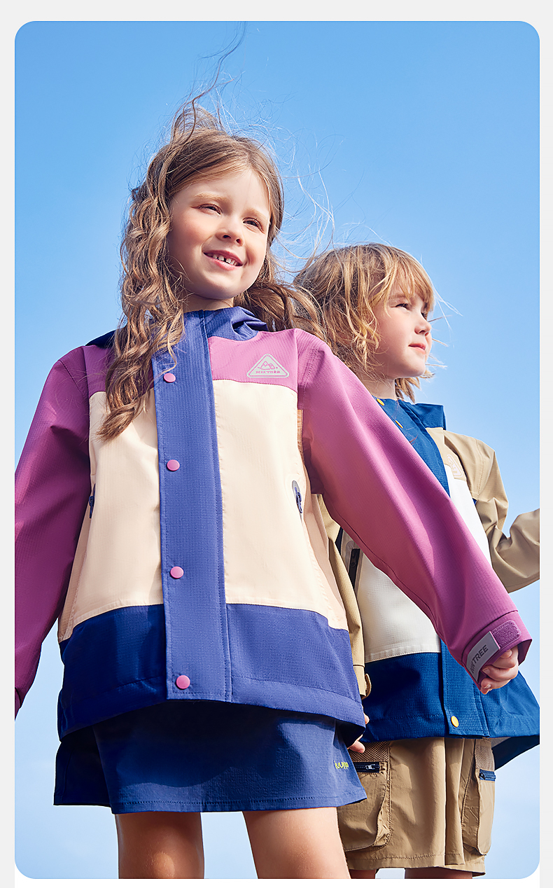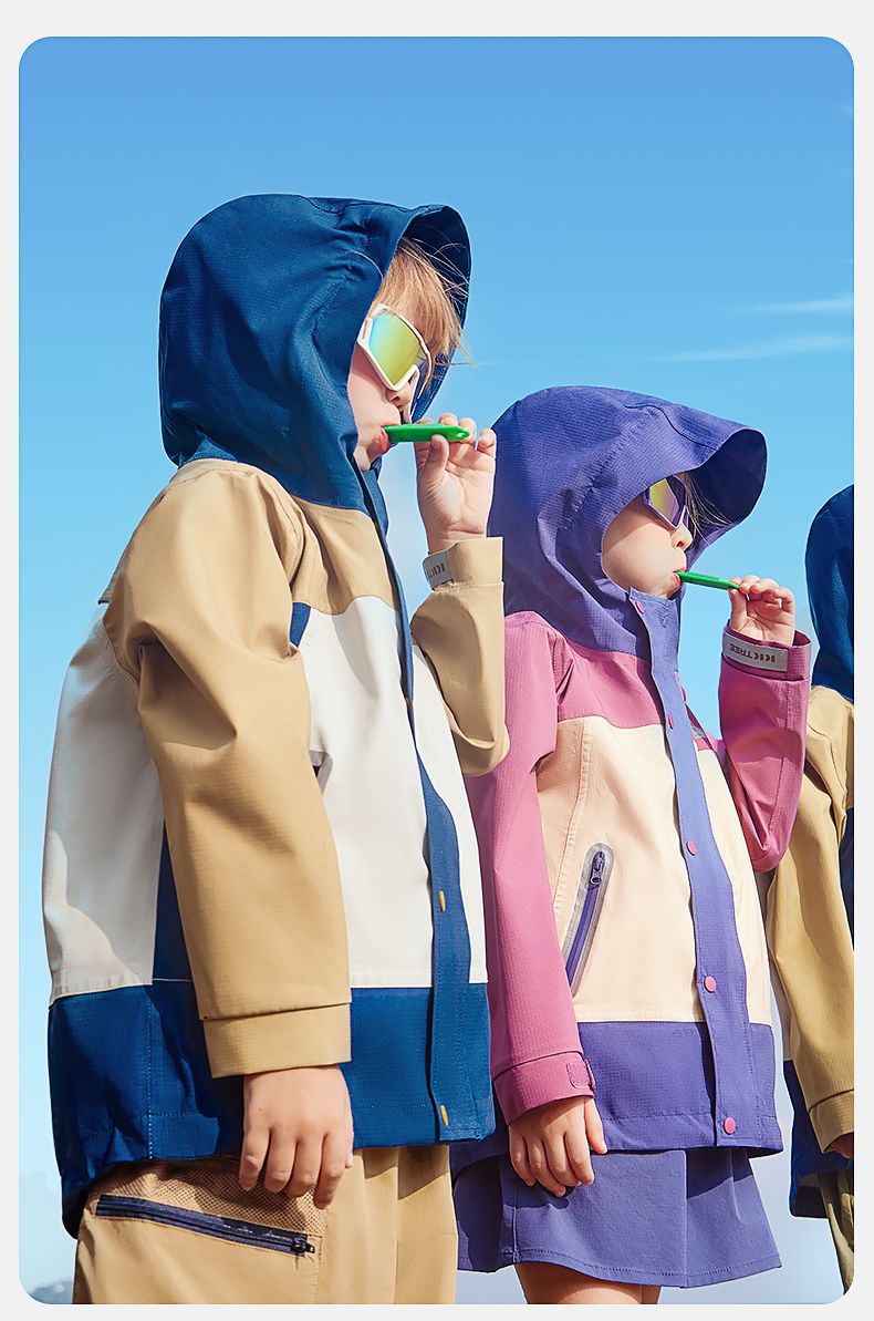KK树儿童冲锋衣2024年新款男童女孩户外防风防水宝宝外套连帽透气山息氧气冲锋衣