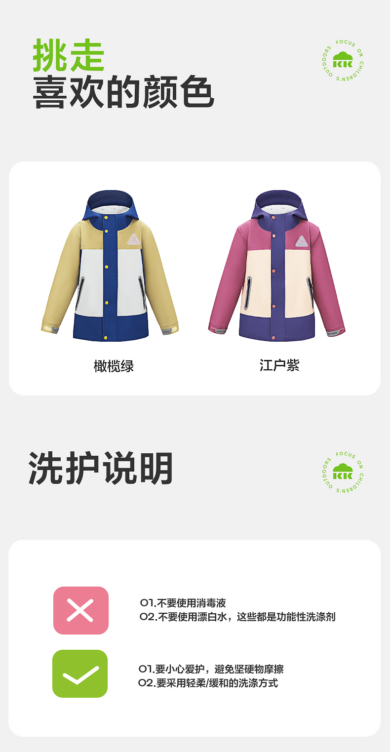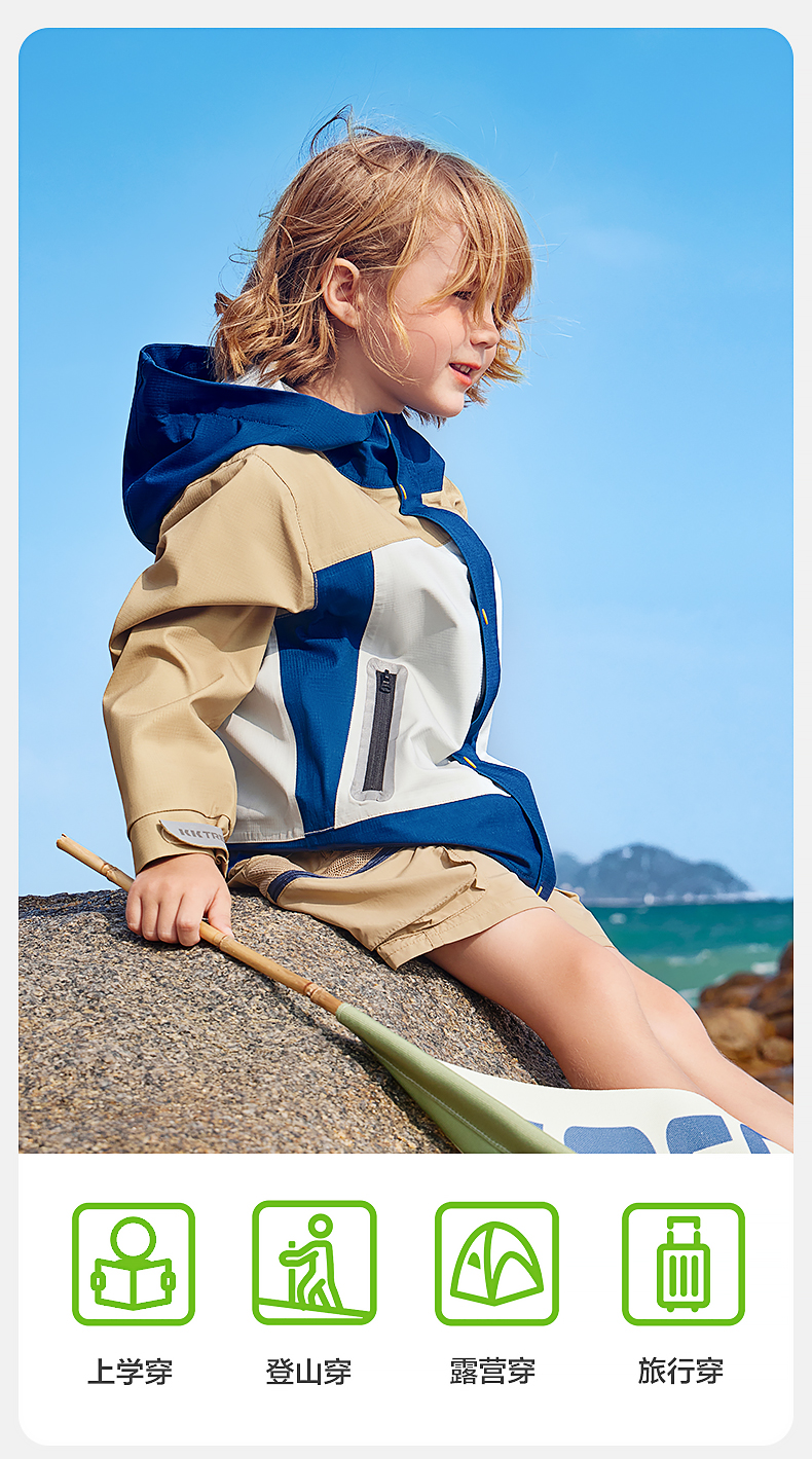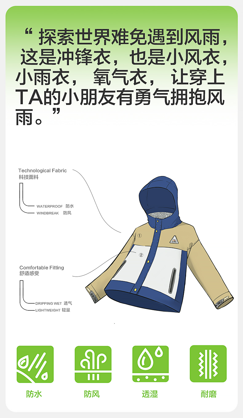 KK树儿童冲锋衣2024年新款男童女孩户外防风防水宝宝外套连帽透气山息氧气冲锋衣