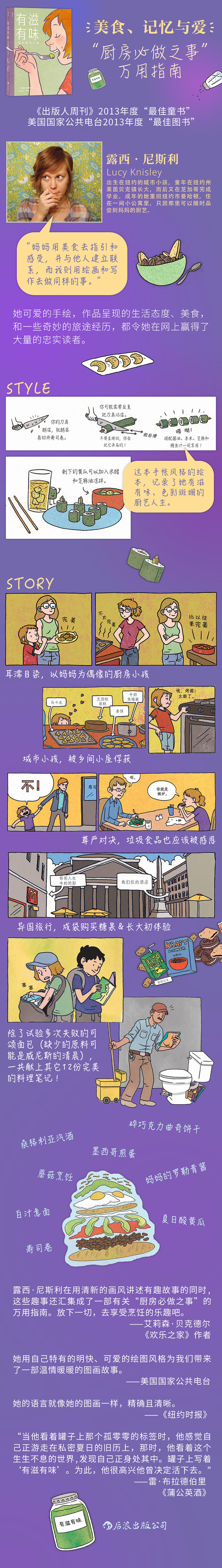 露西·尼斯利在用清新的画风讲述有趣故事的同时,这些趣事还汇集成了一部有关“厨房必做之事”的万用指南。放下一切,去享受烹饪的乐趣吧。
