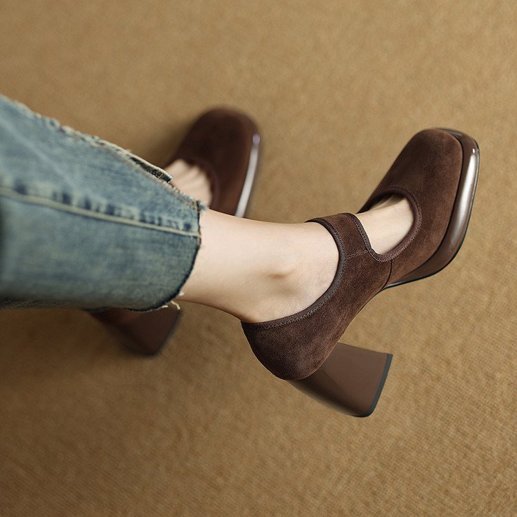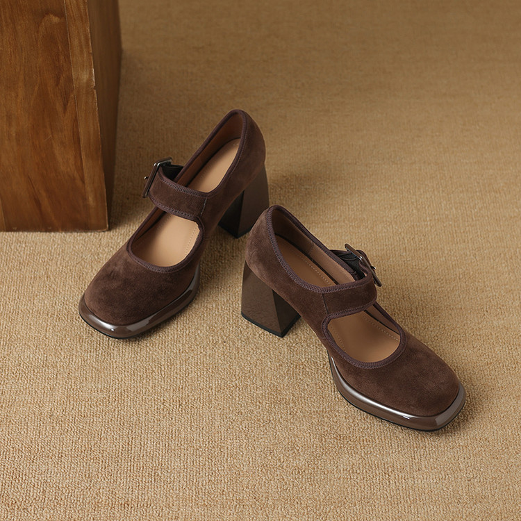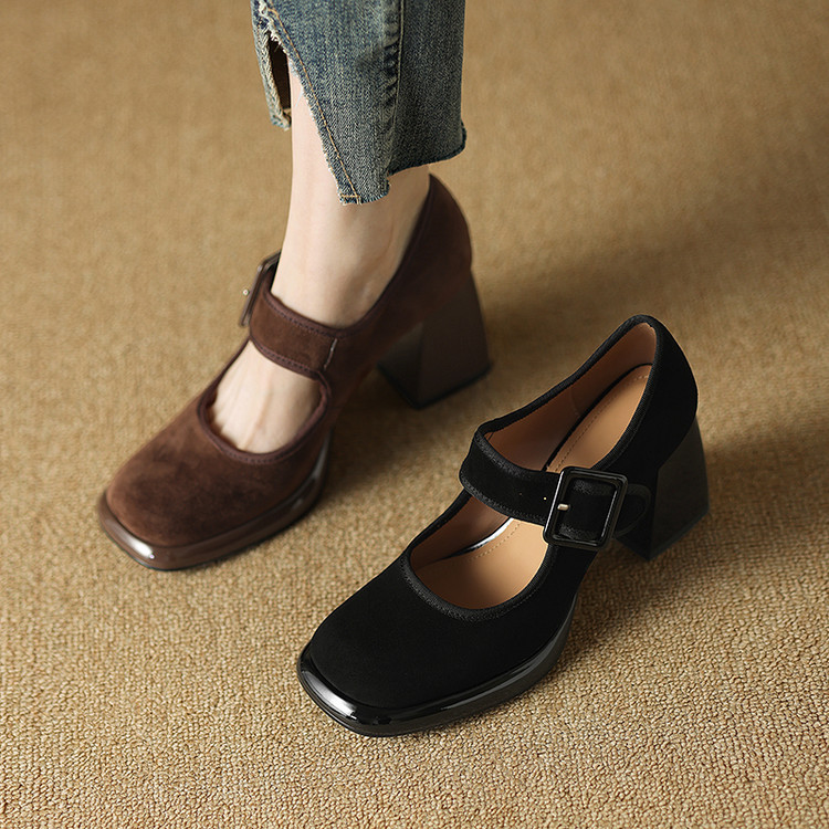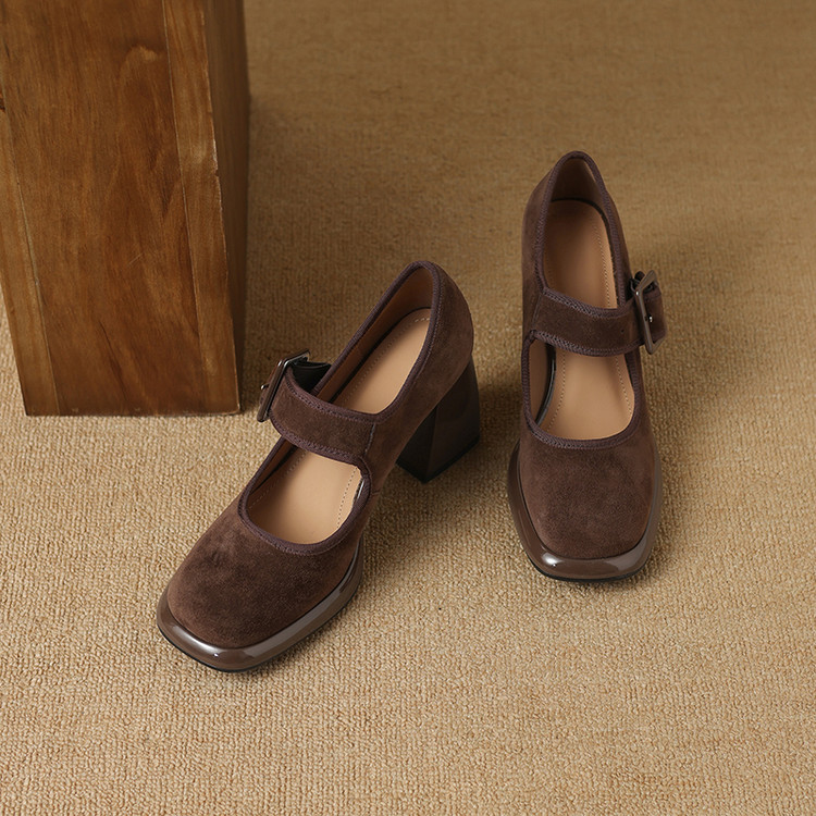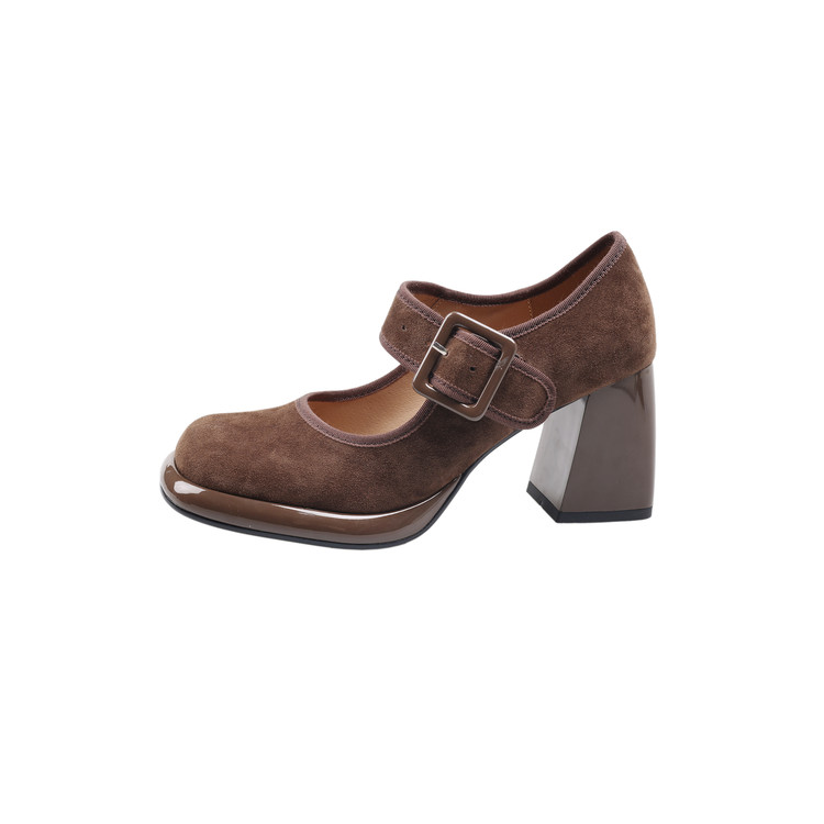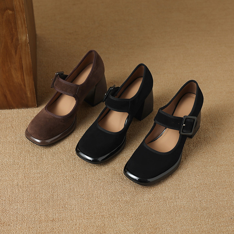 货号:DQ9029F帮面材质: 羊翻皮内里:猪皮鞋垫:牛皮跟高:8cm颜色:黑色,棕色尺码:34-39