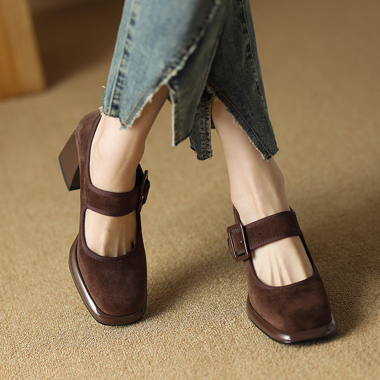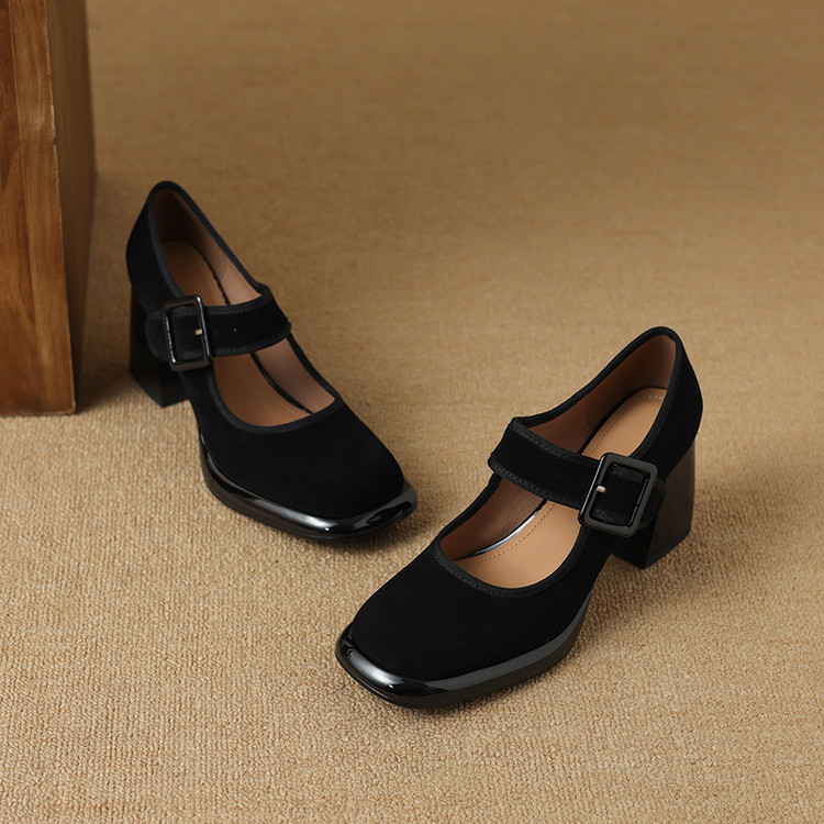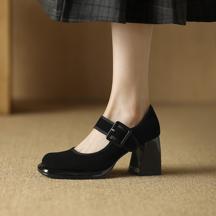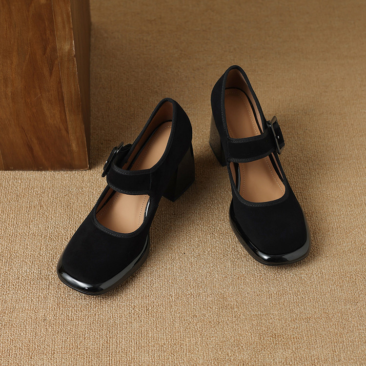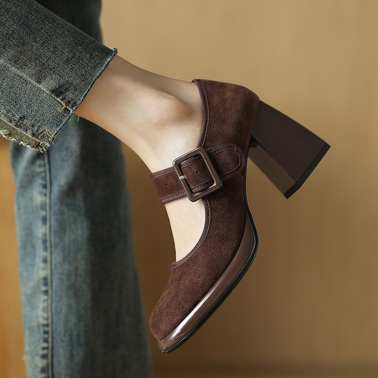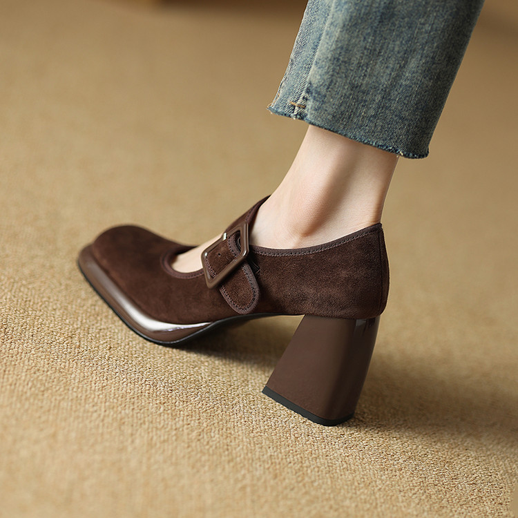 货号:DQ9029F帮面材质: 羊翻皮内里:猪皮鞋垫:牛皮跟高:8cm颜色:黑色,棕色尺码:34-39