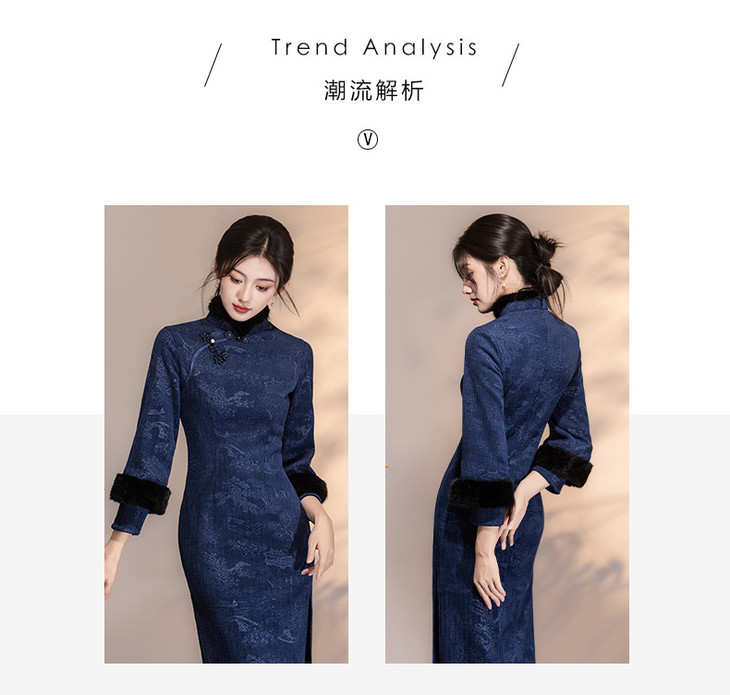 深蓝色加绒加厚新中式连衣裙日常可穿LSB4166 商品图2