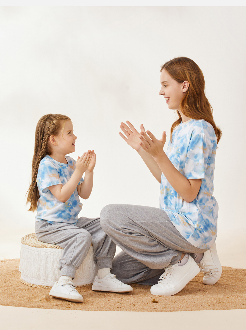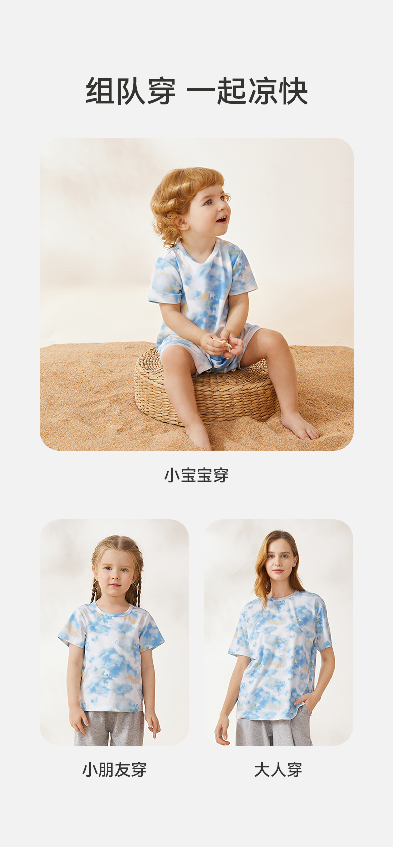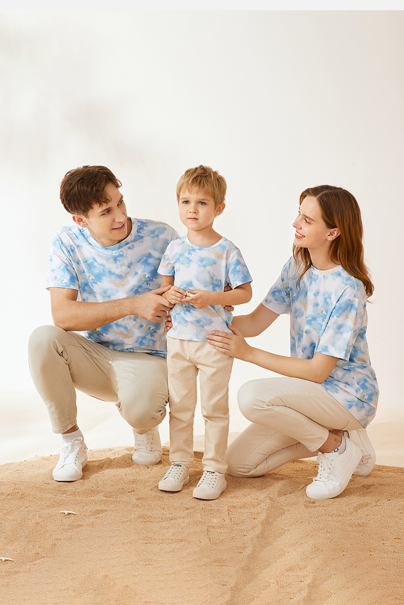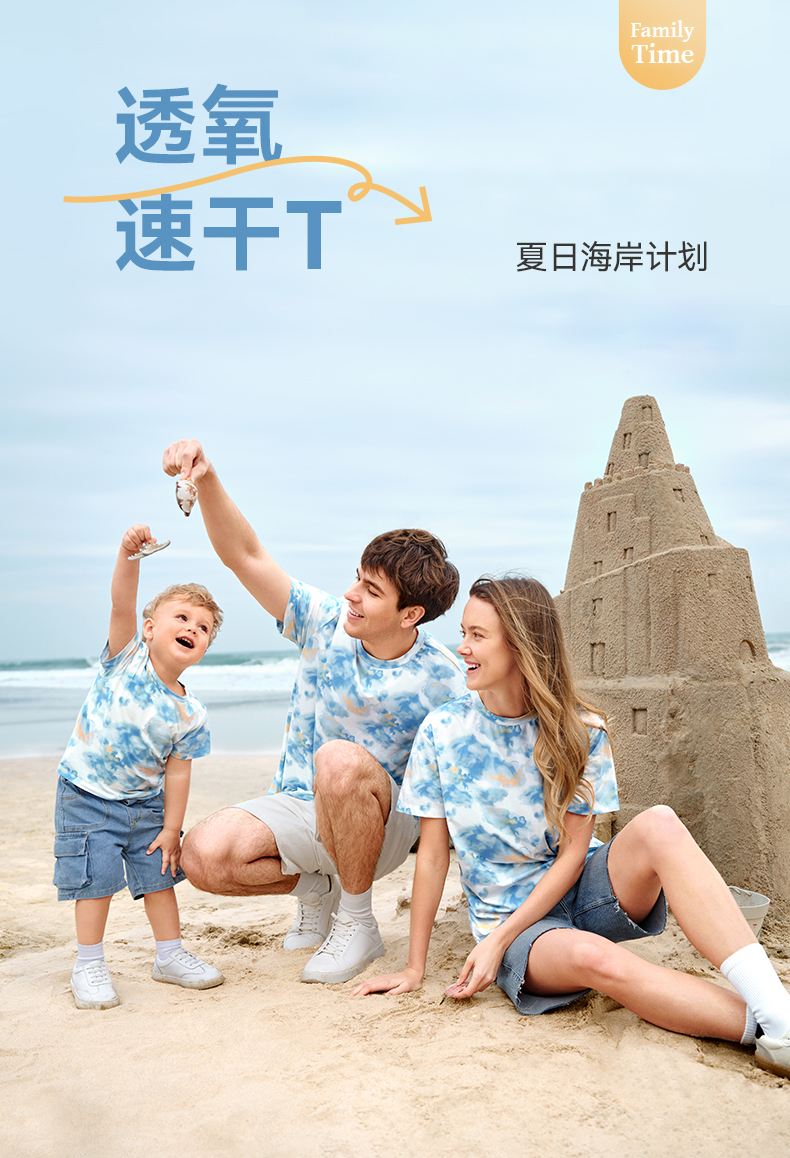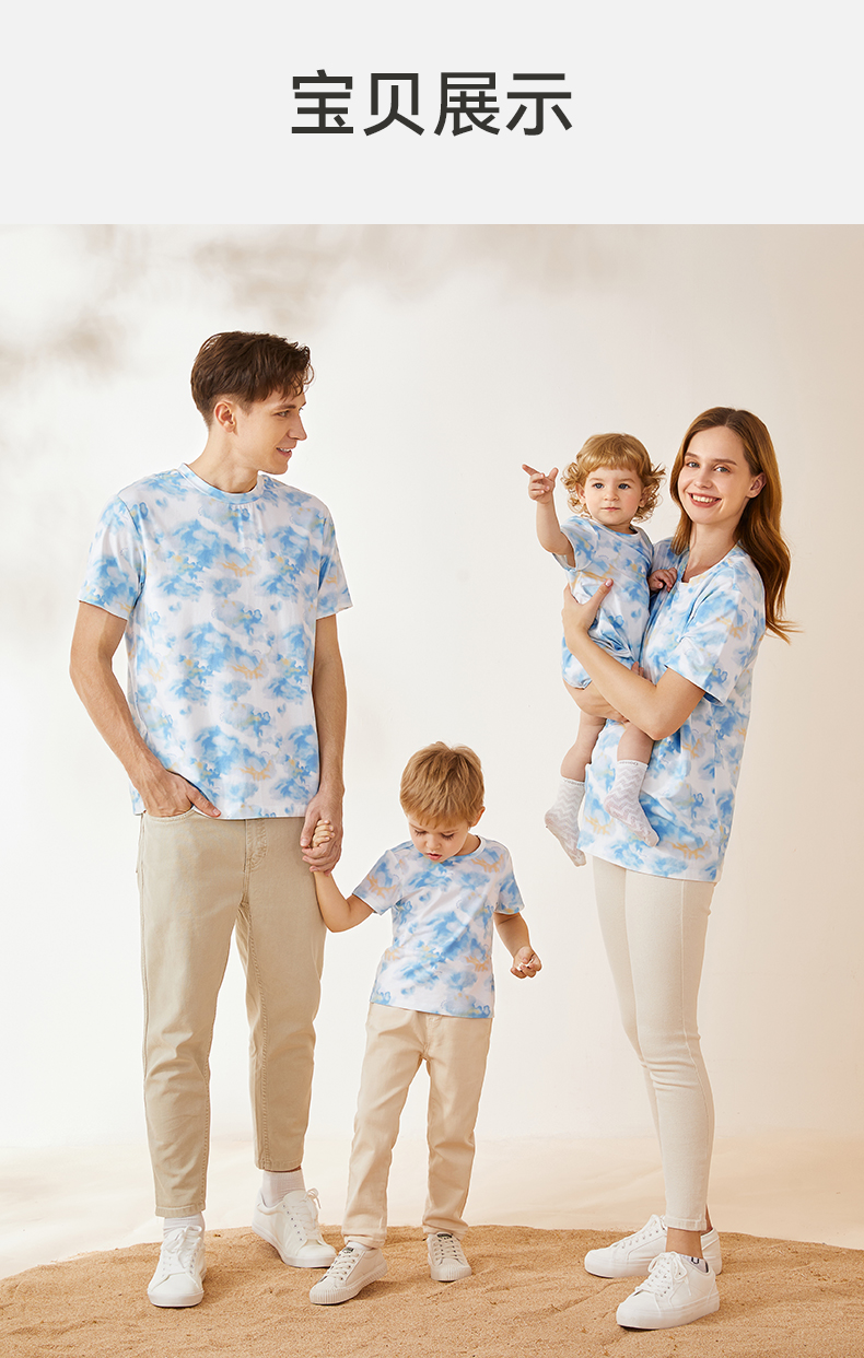 英氏亲子装夏季款成人儿童短袖一家四口夏季款