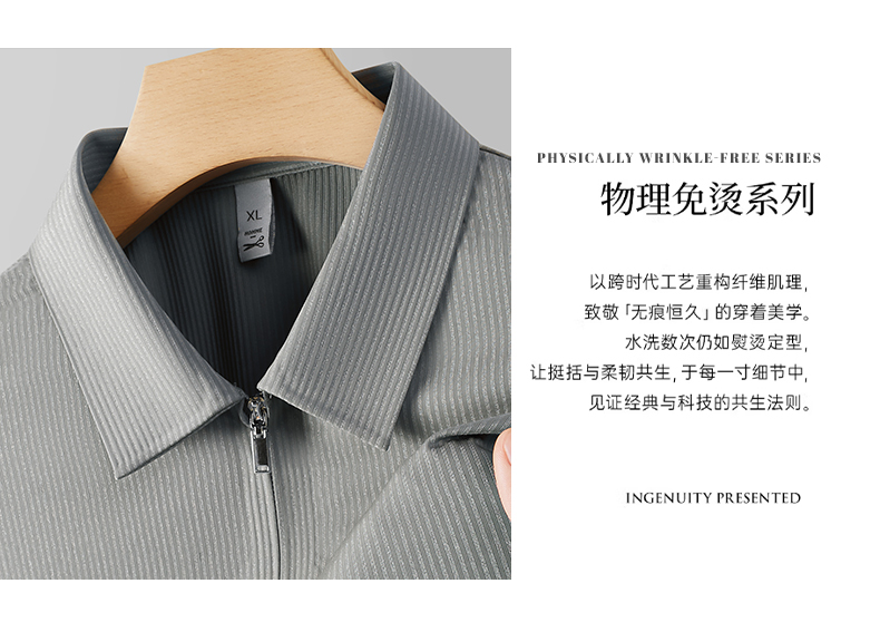 【拉链款】【DDP】大依优型大码男装休闲拉链时尚商务翻领长袖衬衫POLO衫