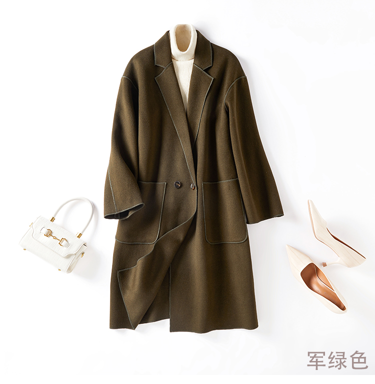 丁摩 秋冬双面羊绒羊毛高端赫本风宽松羊毛外套大衣Q122055