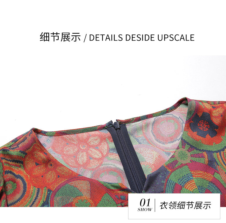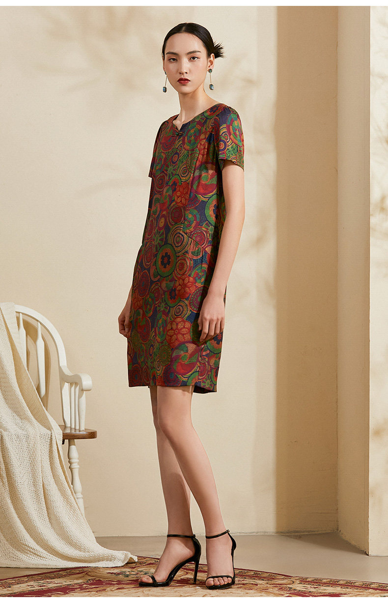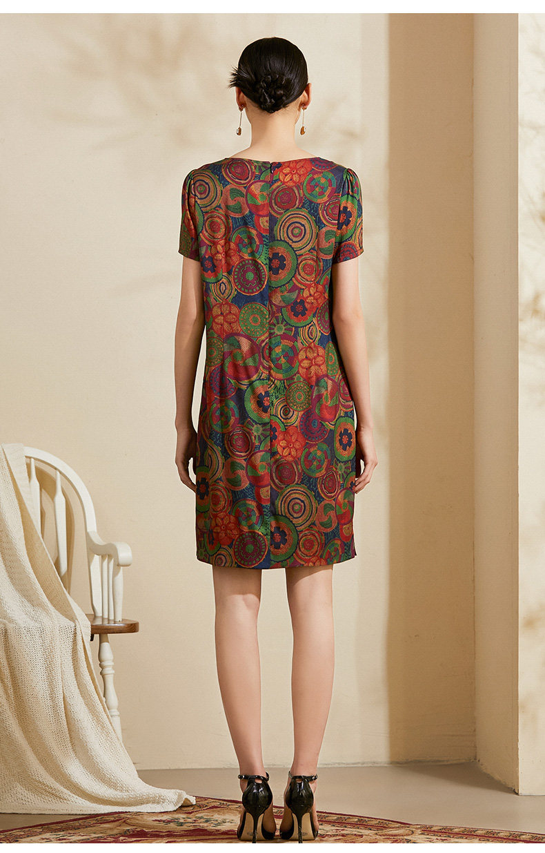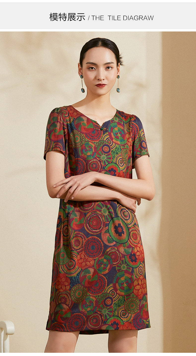 乔万尼新款夏桑蚕丝印花宽松直筒休闲真丝连衣裙女中长款ES2E128